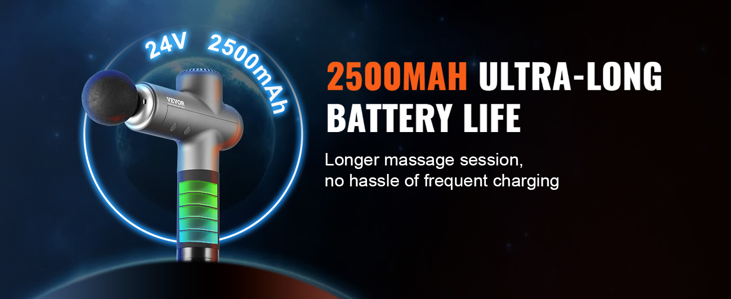 Táto ručná masážna pištoľ, vybavená vysokokapacitnými batériami s napätím 24 V a kapacitou 2500 mAh, zaručuje dlhotrvajúce používanie, vďaka čomu odpadajú starosti s častým dobíjaním. Zostaňte napájaní kedykoľvek a kdekoľvek a užívajte si nepretržitú podporu svojho zdravia.