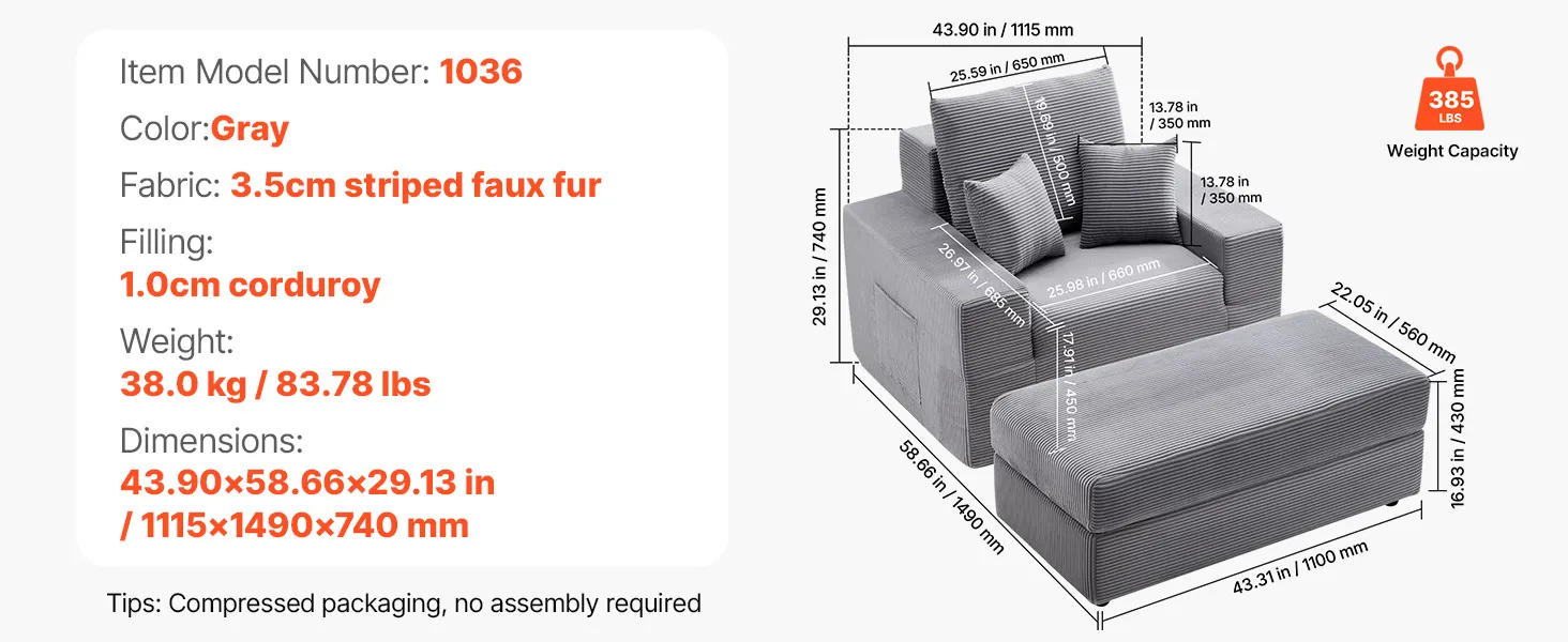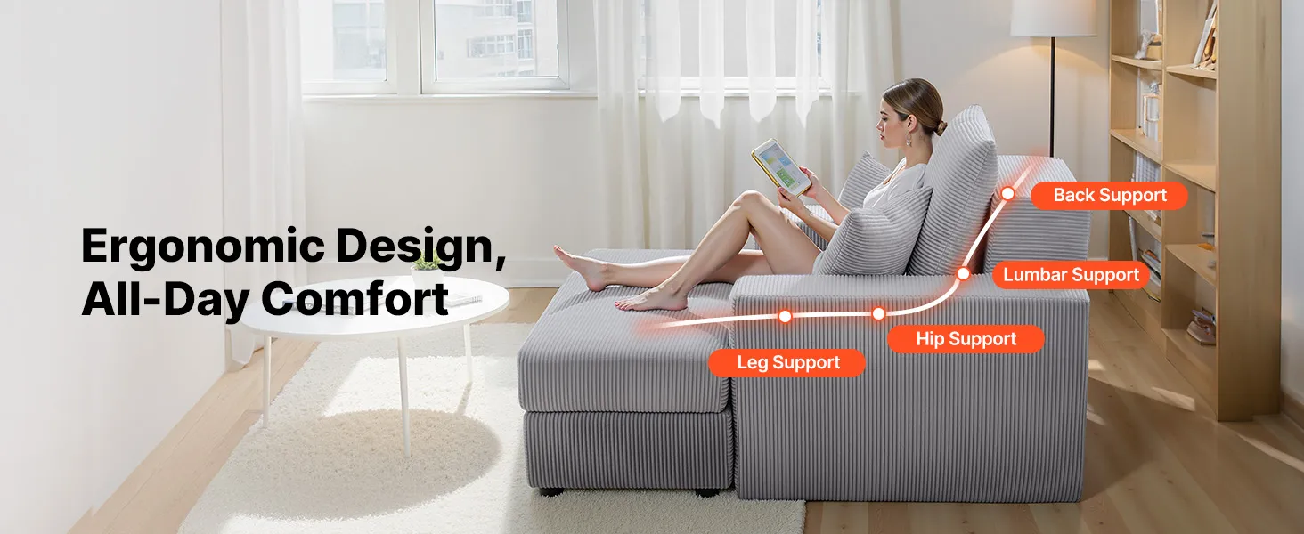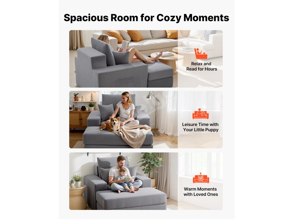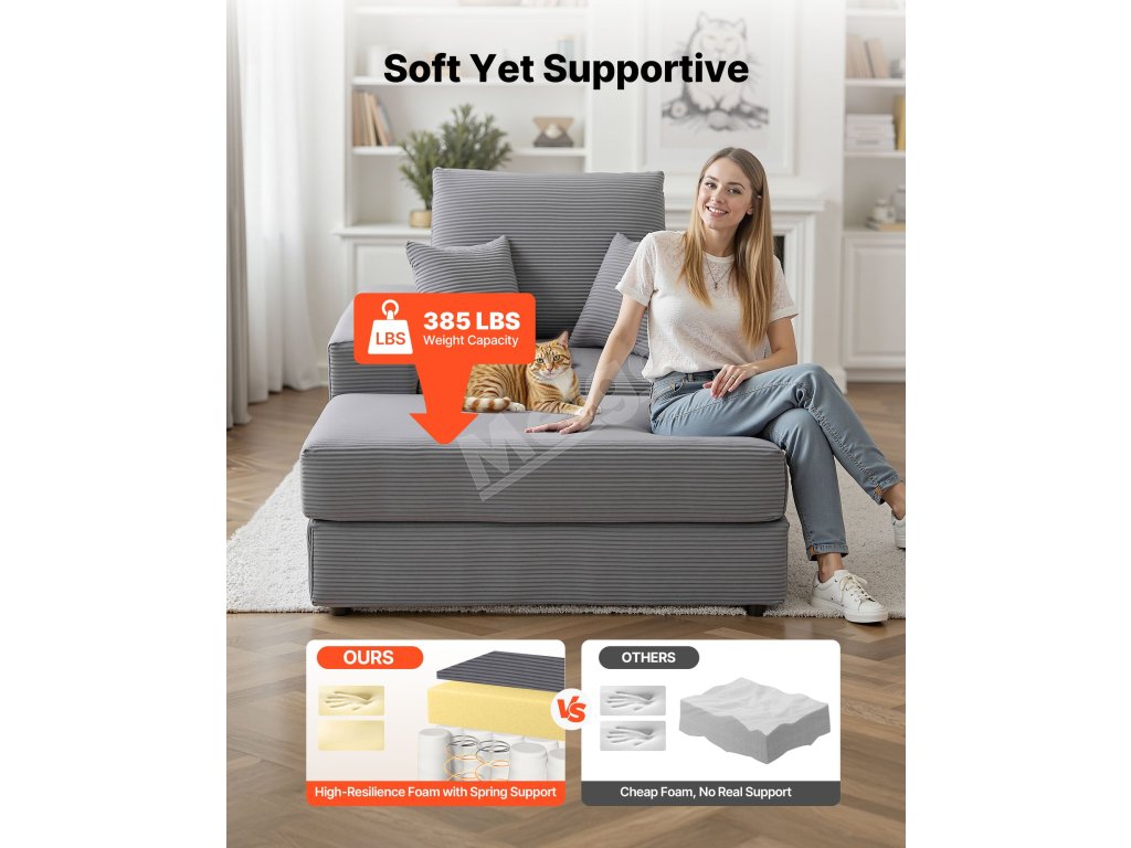 Sedací vankúš s vysokou hustotou tohto nadrozmerného ležadla poskytuje pevnú oporu, zatiaľ čo ergonomický dizajn zabezpečuje pohodlie pri dlhom sedení, čím zabraňuje únave a ovisnutiu.
