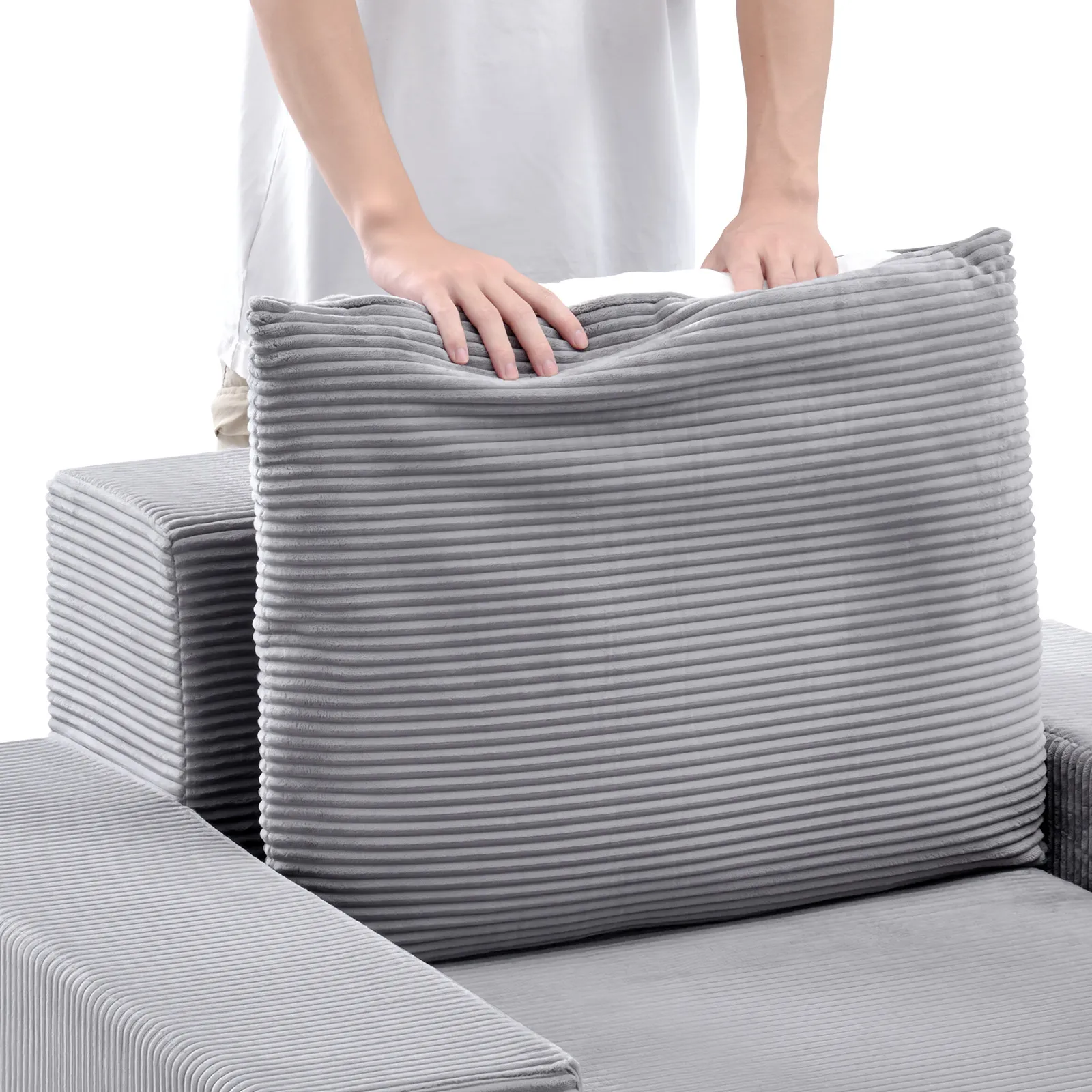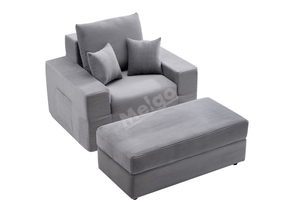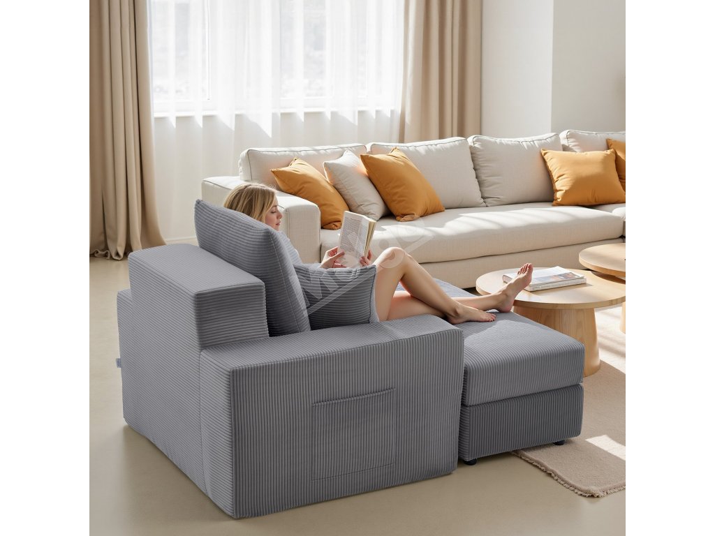 Leňoška 1115 mm modulová bez rámu, manšestrový poťah, šedá s opierkami