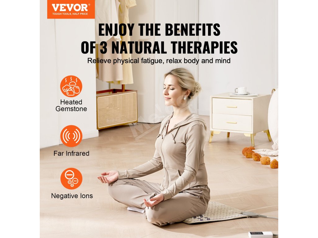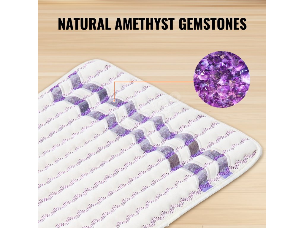 Táto vyhrievaná podložka s prírodnými drahými kameňmi ametystu poskytuje upokojujúce teplo, zmierňuje telesný stres, upokojuje myseľ a podporuje krvný obeh, čím ponúka úplný relaxačný zážitok.