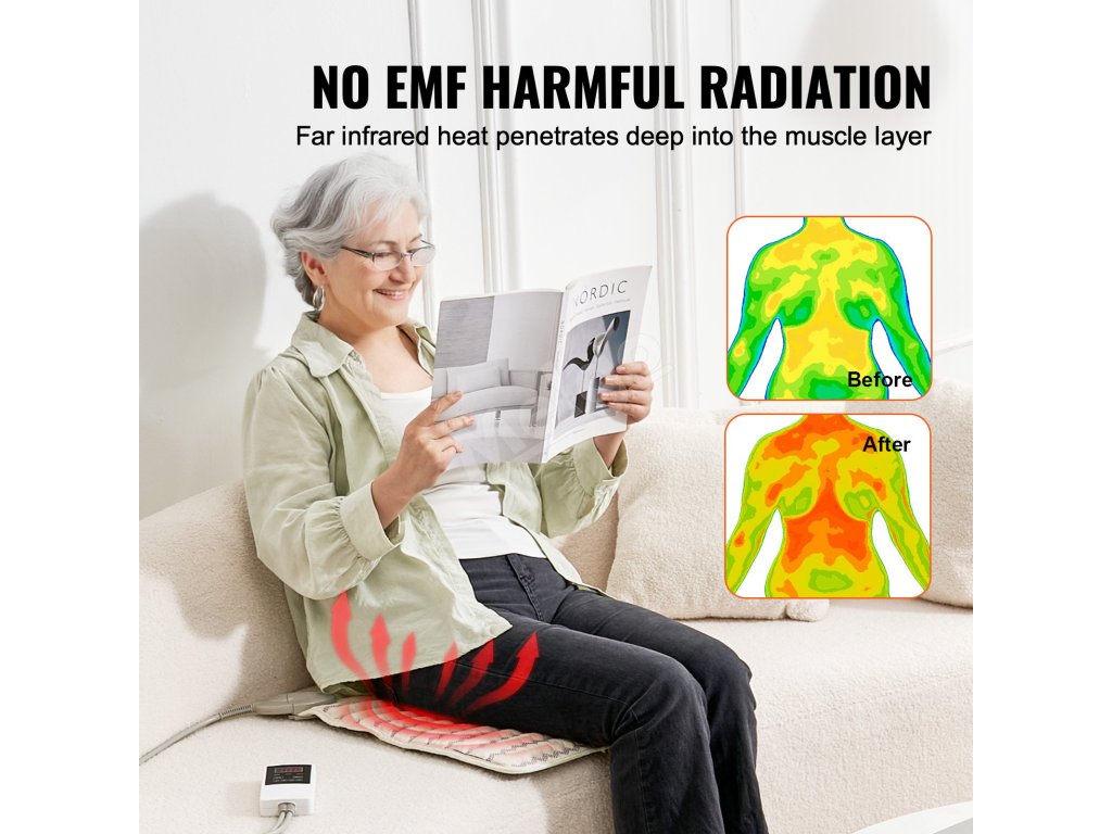 Pocíťte upokojujúce teplo, ktoré zmierňuje stres a uvoľňuje telo. Naša vyhrievacia poduška s ametystovými drahokamami s rozmermi 18" x 18" je ideálna na cielenú úľavu, pretože kombinuje horúce drahokamy, ďaleké infračervené lúče a záporné ióny, ktoré prenikajú hlboko do svalov, zmierňujú bolesť a zlepšujú krvný obeh.