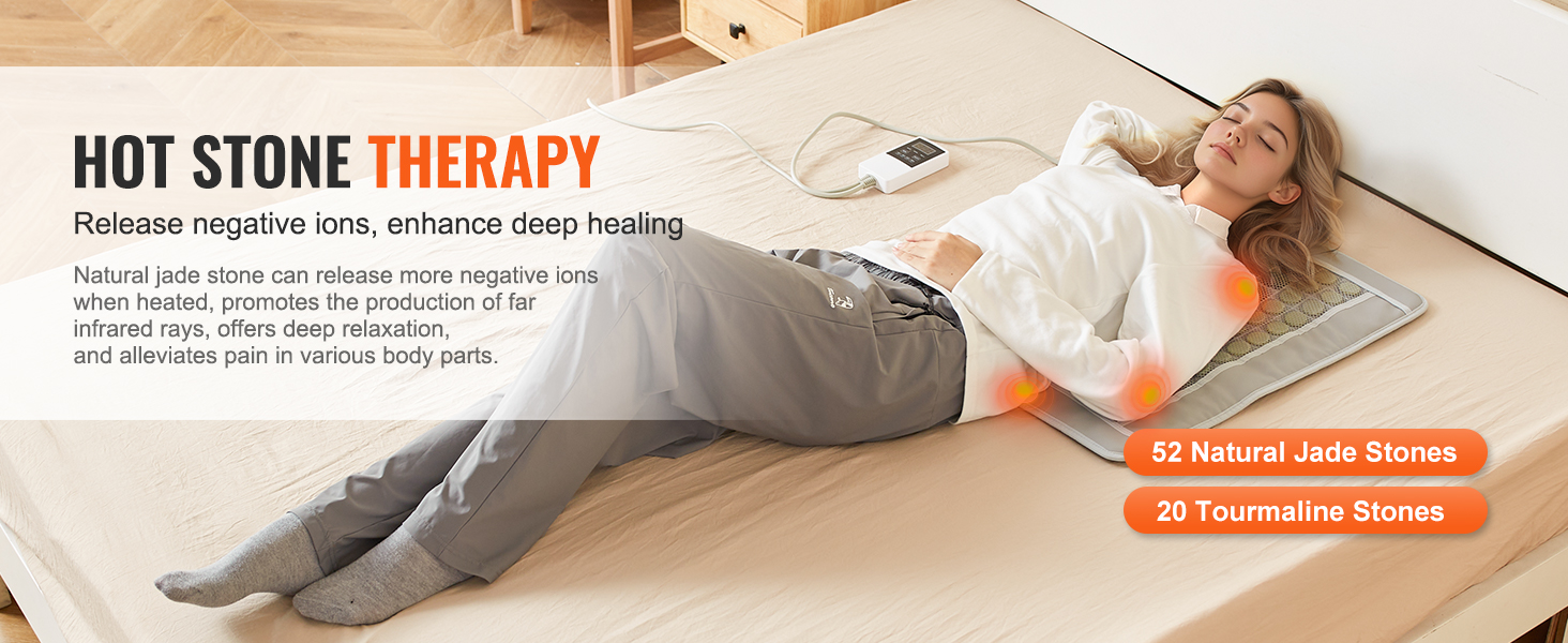Vyhrievacia podložka VEVOR s ďalekým infračerveným žiarením je ideálnou voľbou pre tých, ktorí hľadajú upokojujúce teplo a zdravie. Kombináciou ďalekých infračervených lúčov, 52 prírodných nefritov a 20 turmalínových kameňov hĺbkovo upokojuje svalové napätie, podporuje krvný obeh a zlepšuje kvalitu spánku. Vyberte si ho a osvojte si zdravší život!
