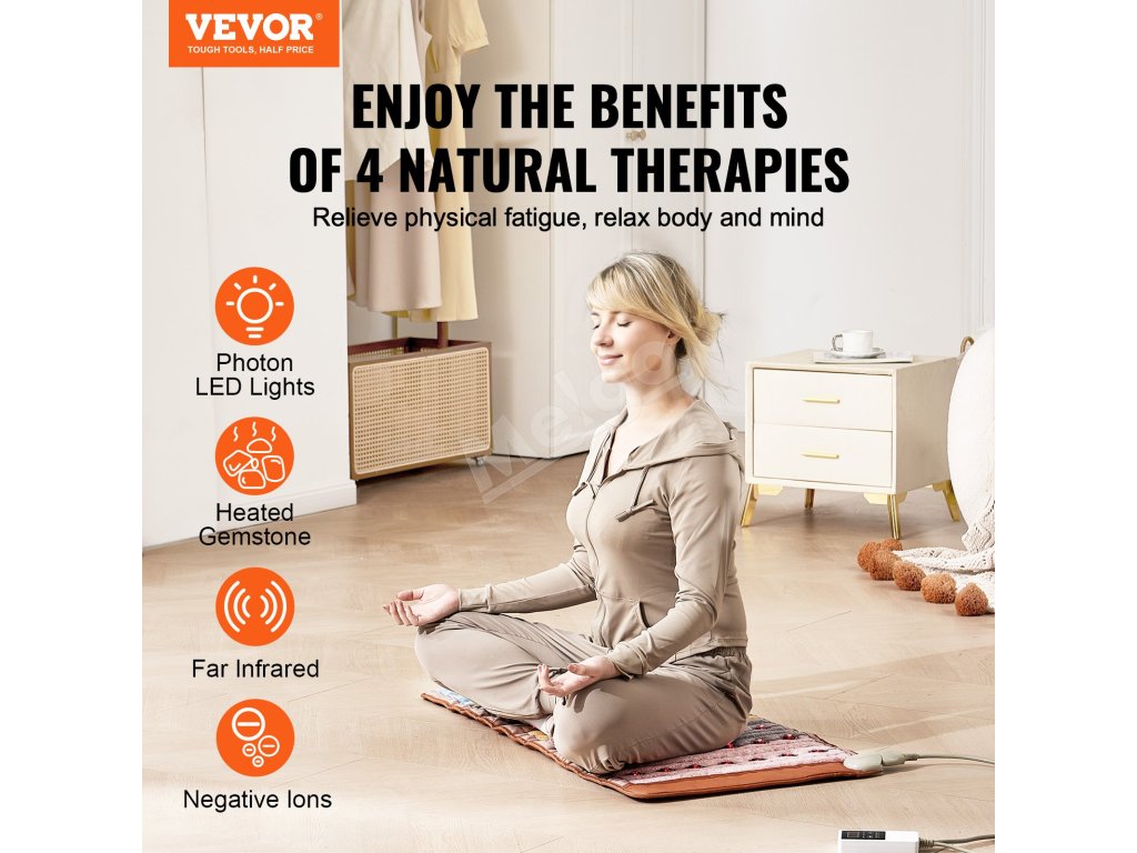 S využitím 660nm fotónového červeného svetla a ďalekých infračervených lúčov preniká táto vyhrievacia podložka z prírodných drahých kameňov hlboko do svalových vrstiev, čím zmierňuje bolesť a únavu, podporuje uvoľnenie celého tela a poskytuje hlbší terapeutický účinok pre maximálne pohodlie.