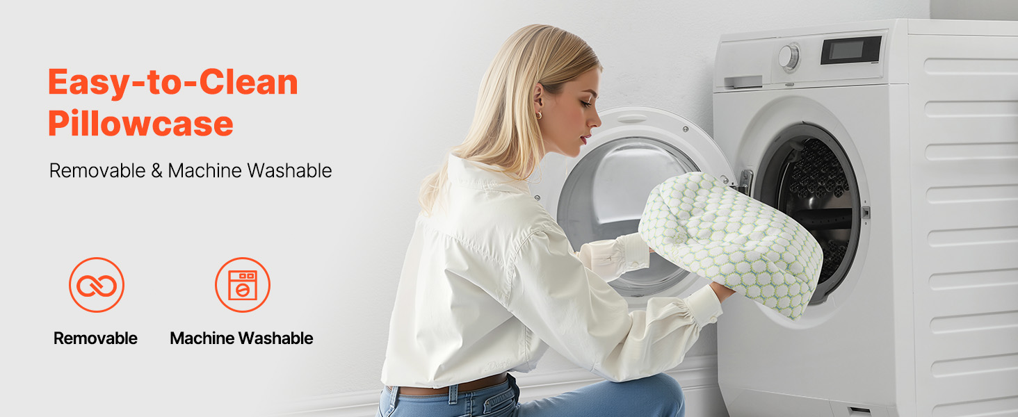 Poťah nášho tehotenského podporného vankúša je snímateľný a možno ho prať v práčke, takže čistenie je bezproblémové. Jednoducho ho rozopnite, hoďte do práčky a zakaždým si užívajte čerstvý, čistý vankúš, ktorý vám zaručí dlhotrvajúci komfort a pohodlie.