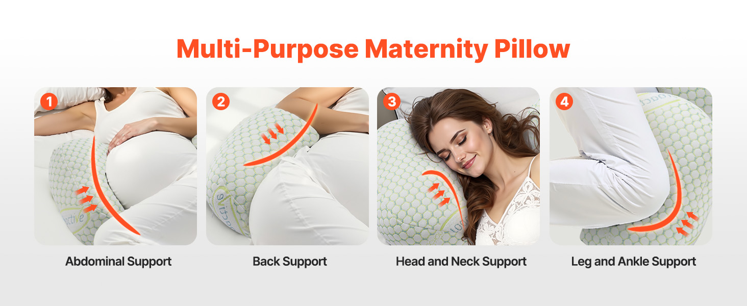 Tehotenský w-tvarovaný vankúš, prateľný poťah, pre chrbát a boky