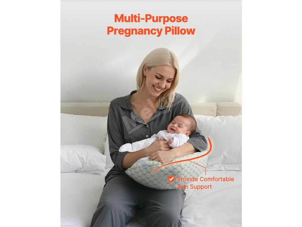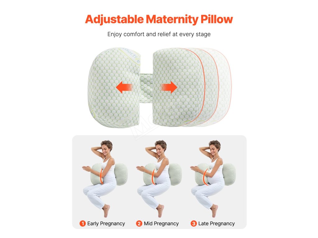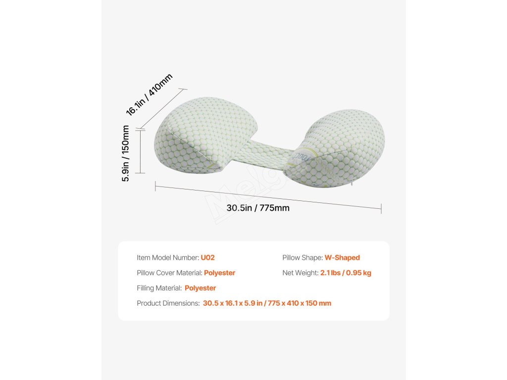Tehotenský w-tvarovaný vankúš, prateľný poťah, pre chrbát a boky