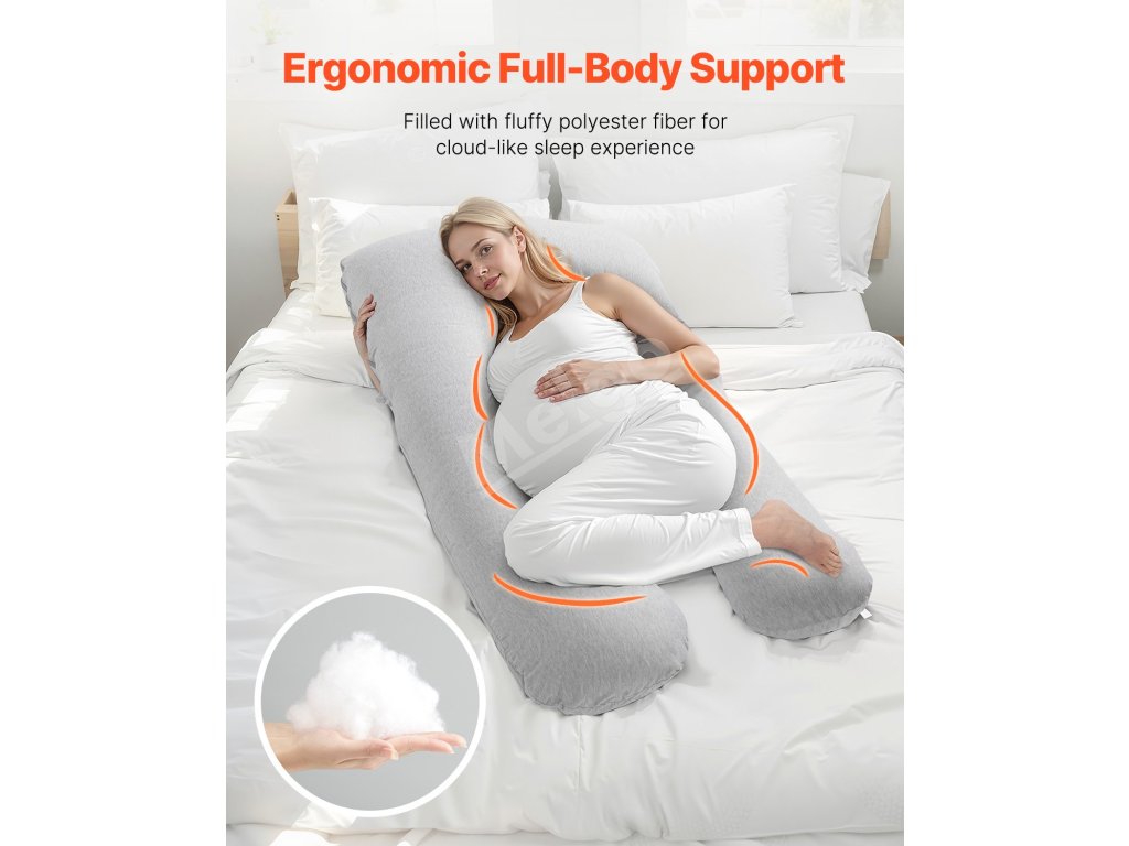 Vychutnajte si maximálne pohodlie a podporu s naším tehotenským vankúšom v tvare U. Vďaka ergonomickej podpore celého tela, poťahu z džersejovej bavlny šetrnému k pokožke a výplni z prémiových polyesterových vlákien ponúka plyšovú, príjemnú oporu pre trvalý a kvalitný relax.