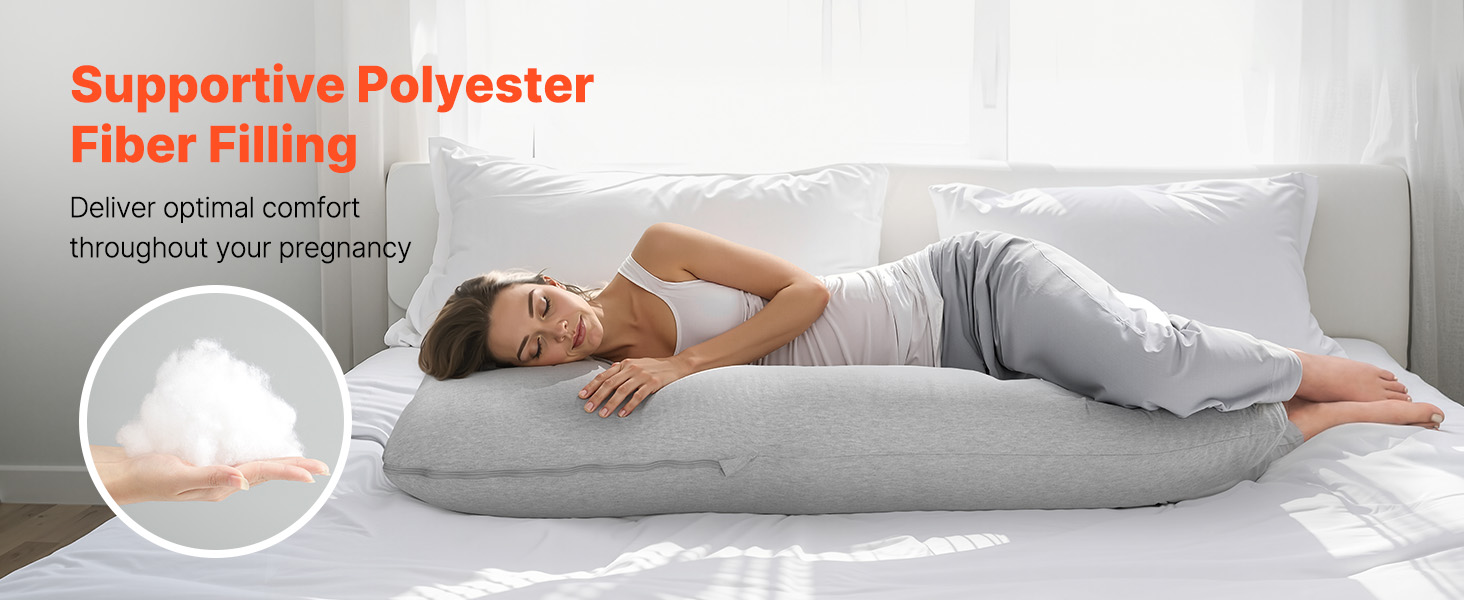 Náš tehotenský vankúš je vyplnený vysokokvalitným polyesterovým vláknom, ktoré poskytuje dokonalú rovnováhu opory a pohodlia pre vaše telo. Je navrhnutý tak, aby zmierňoval tlak a posilňoval relaxáciu, pomáha vám uvoľniť sa a užiť si pokojnejší zážitok.