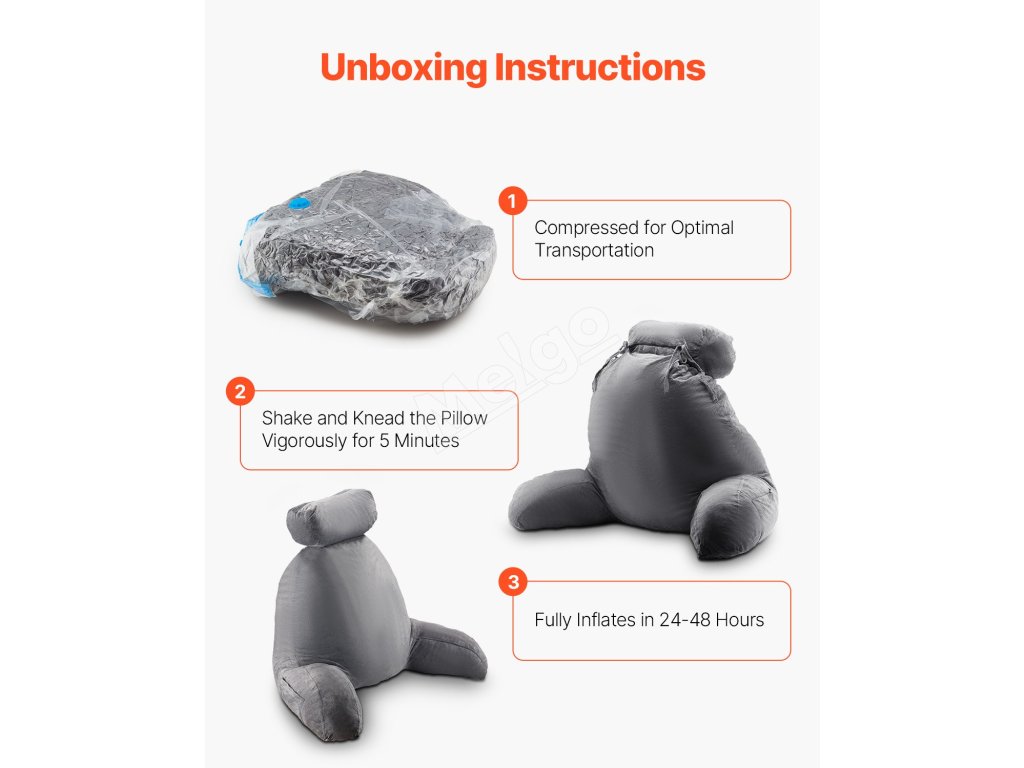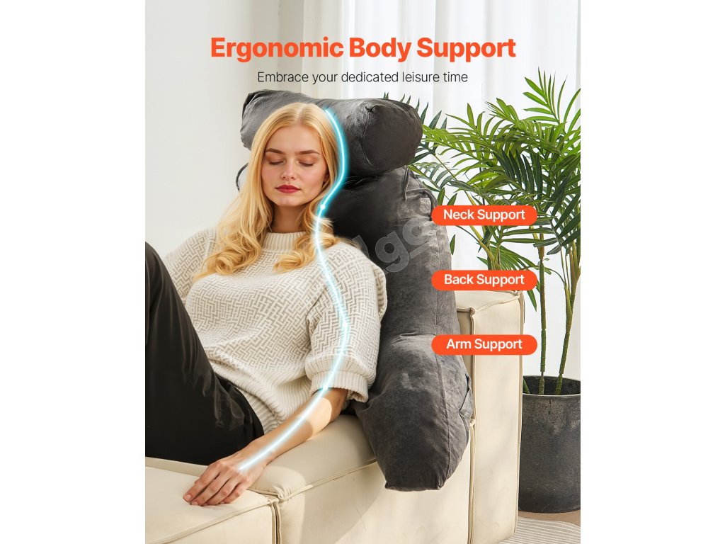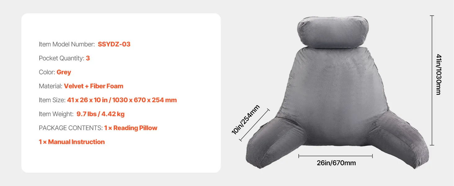 Čítací vankúš do postele veľký, odnímateľný oporník, 3 vrecká, sivý