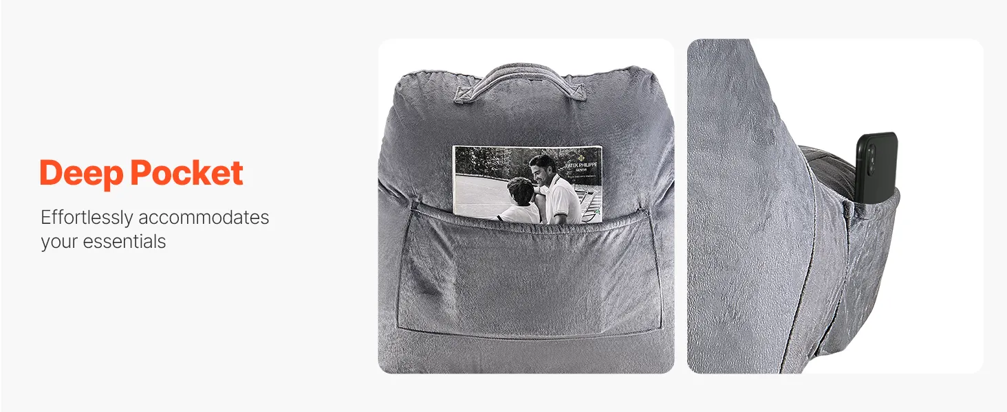 Vďaka jednému veľkému zadnému vrecku a dvom bočným vreckám má táto konštrukcia každodenné predmety, ako sú diaľkové ovládače, telefóny a časopisy, na dosah ruky, čím udržiava prehľadný a organizovaný obytný priestor.