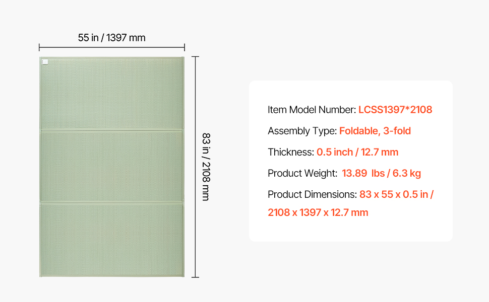 | Rozmery výrobku | 83 x 55 x 0,5 palca / 2108 x 1397 x 13 mm |