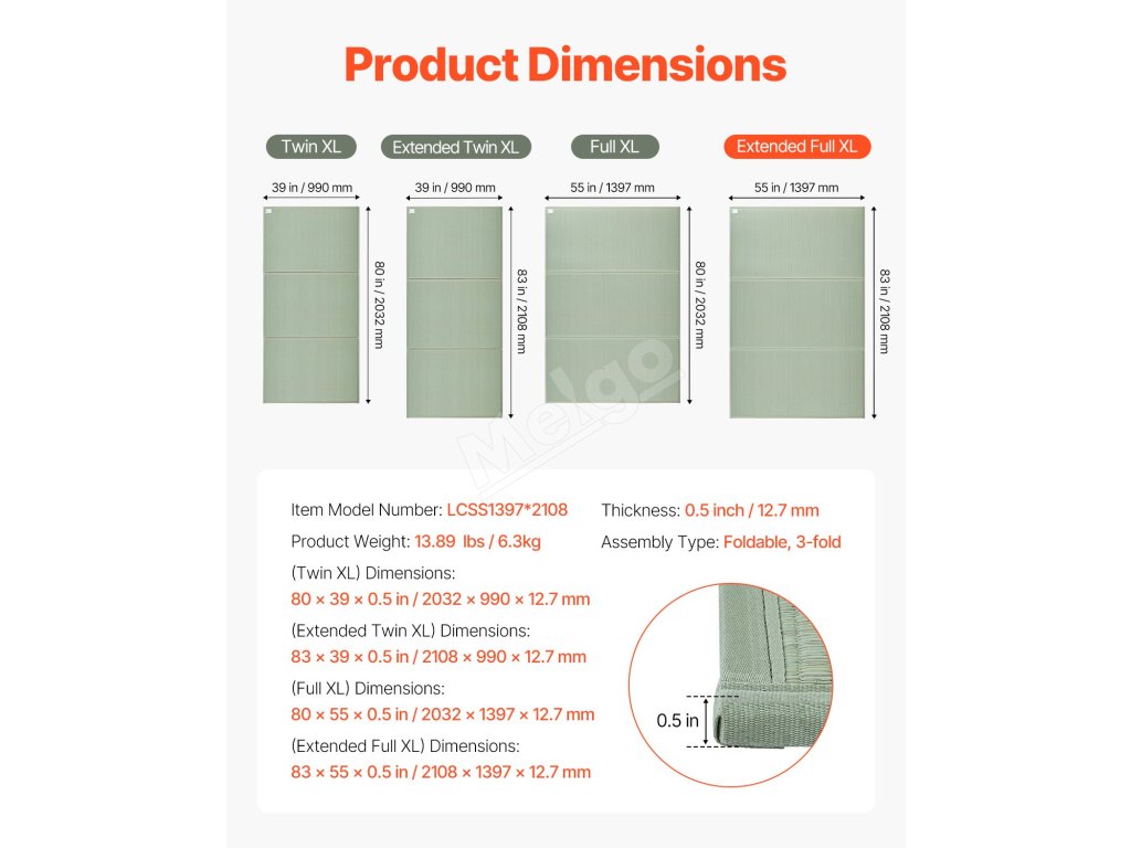 | Rozmery výrobku | 83 x 55 x 0,5 palca / 2108 x 1397 x 13 mm |