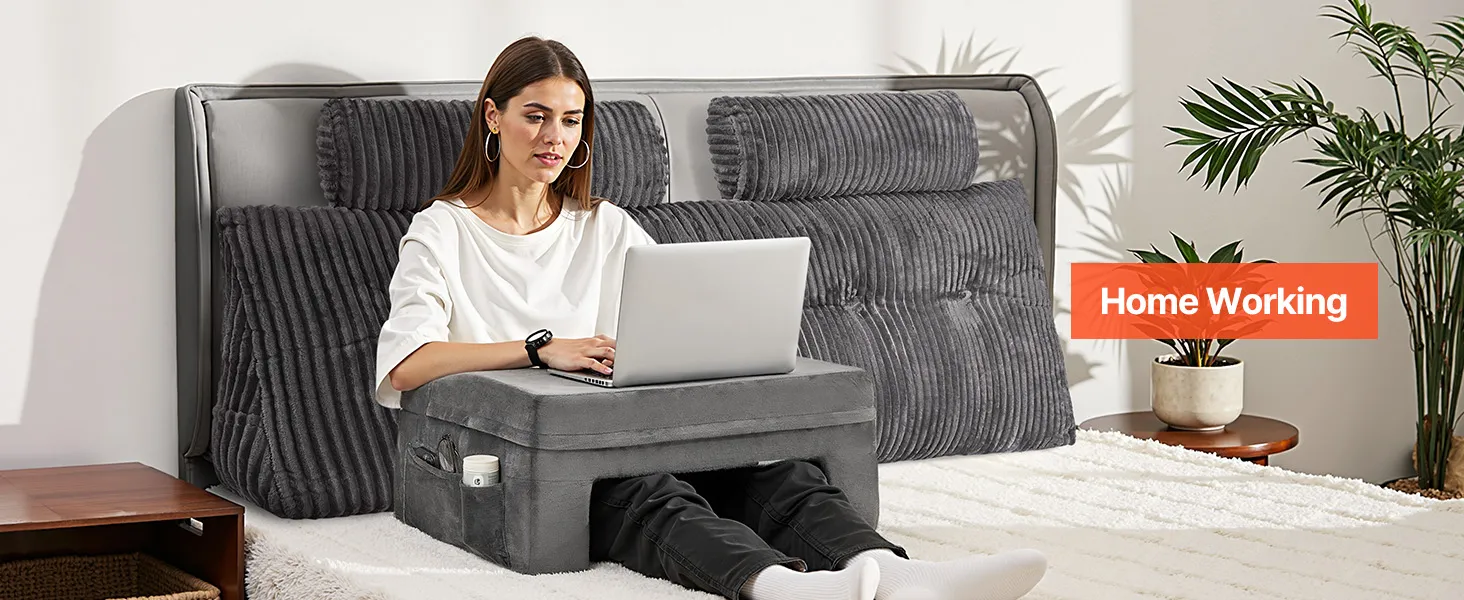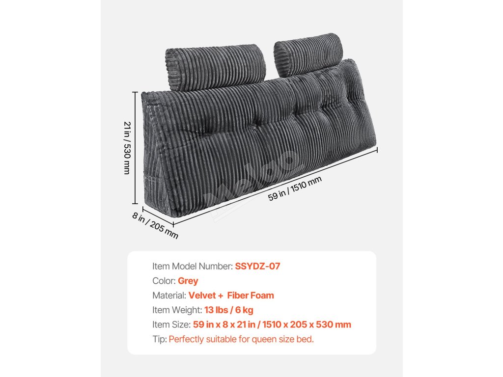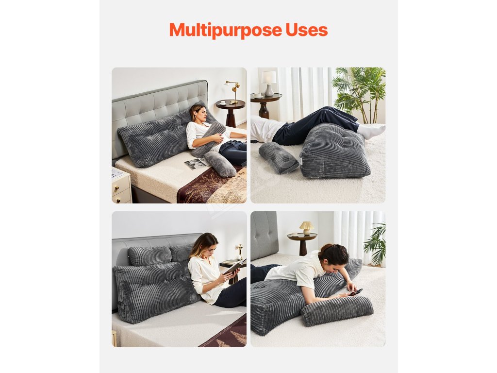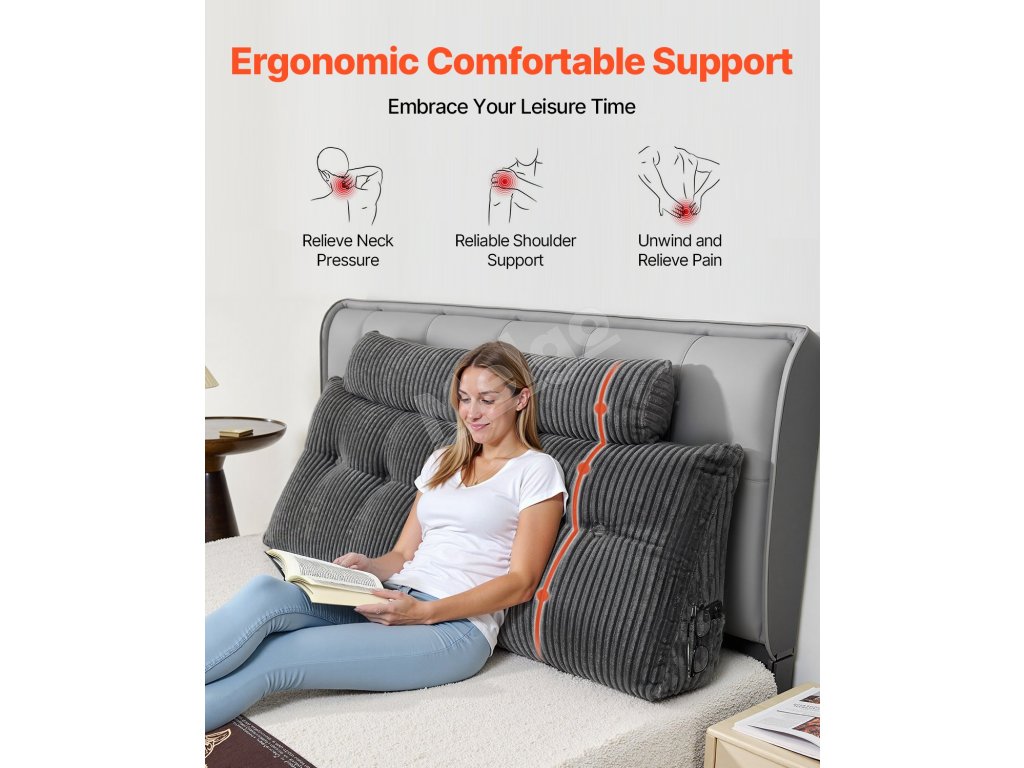 Klinový vankúš queen size s 2 bočnými vreckami a 2 opierkami, prateľný