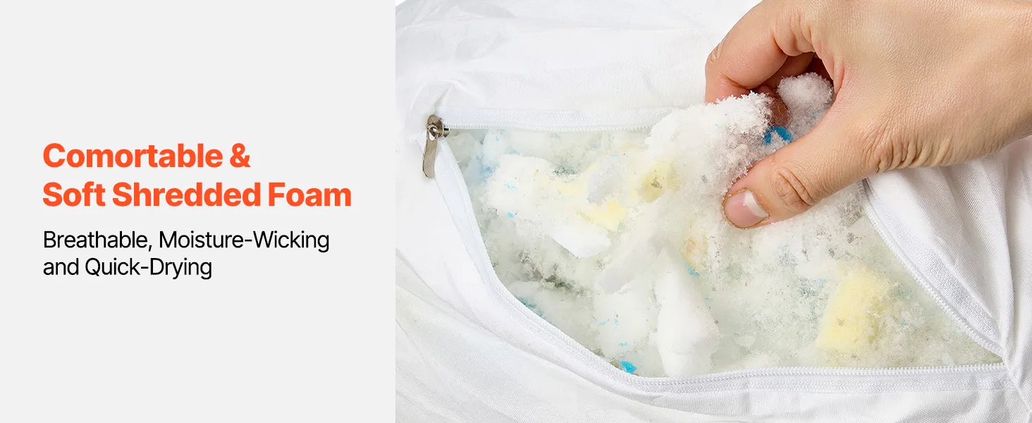 Odnímateľný poťah vybavený elegantným kovovým zipsom uľahčuje čistenie a zabezpečuje svieže a hygienické prostredie. Vankúš sa ľahko rozdelí na dva plyšové hlavové vankúše, čo ponúka jedinečnú flexibilitu na prispôsobenie pohodlia a podpory podľa vašich predstáv.