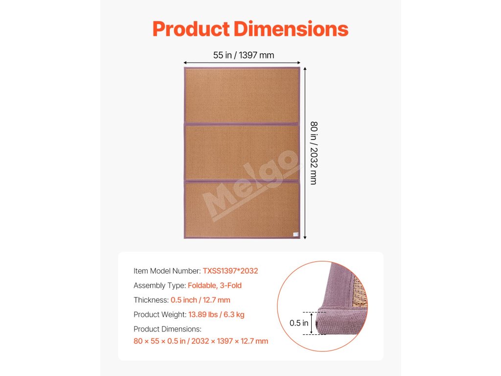 | Rozmery výrobku | 80 x 55 x 0,5 palca / 2032 x 1397 x 13 mm |