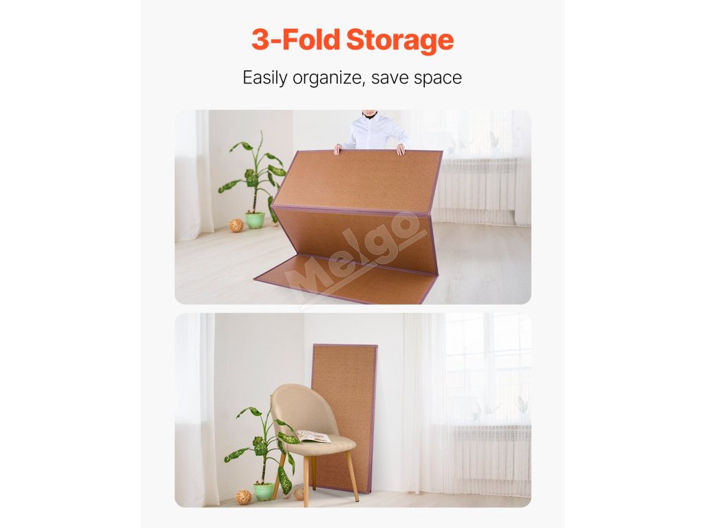 Aj po zložení do troch vrstiev zostáva táto japonská rohož tatami štíhla a kompaktná, čím šetrí miesto vo vašej spálni.