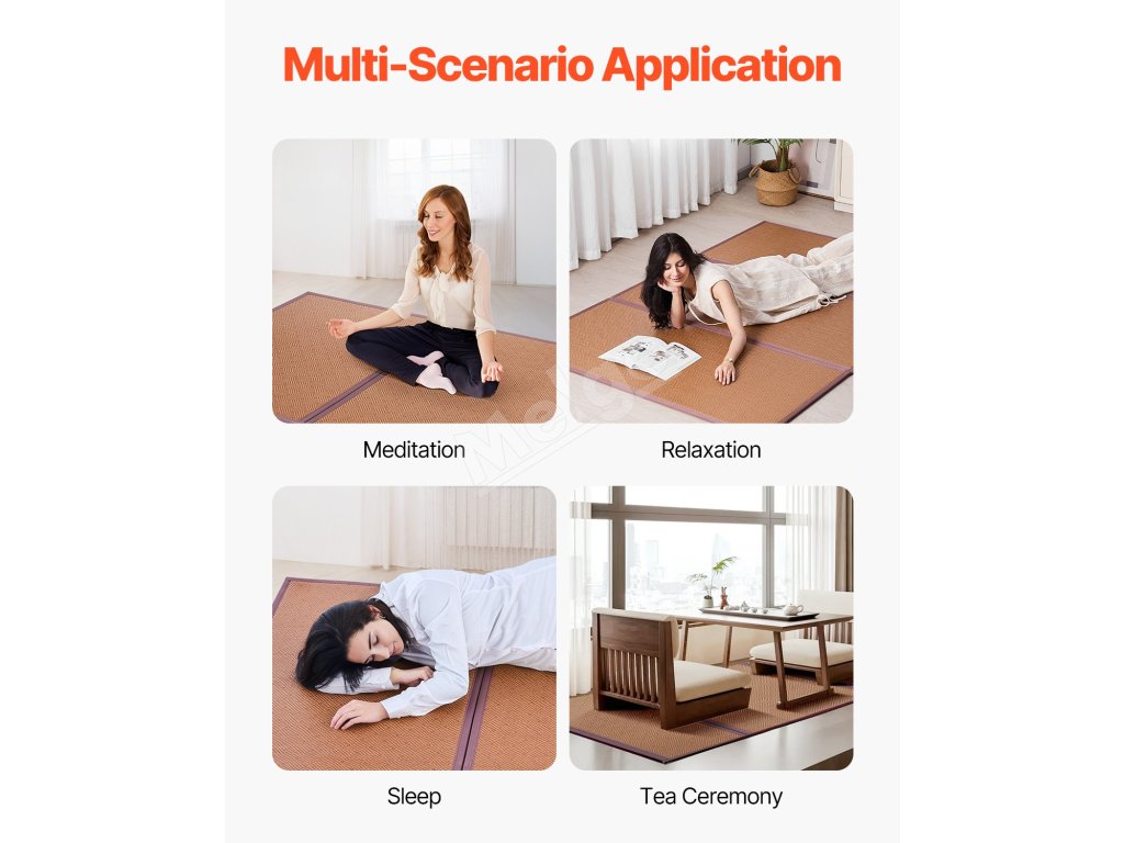 Túto ratanovú podložku tatami možno používať nielen ako japonský matrac, ale je ideálna aj na meditáciu, jogu a relaxáciu. Vďaka ľahkej a prenosnej konštrukcii sa ľahko prenáša a skladuje.
