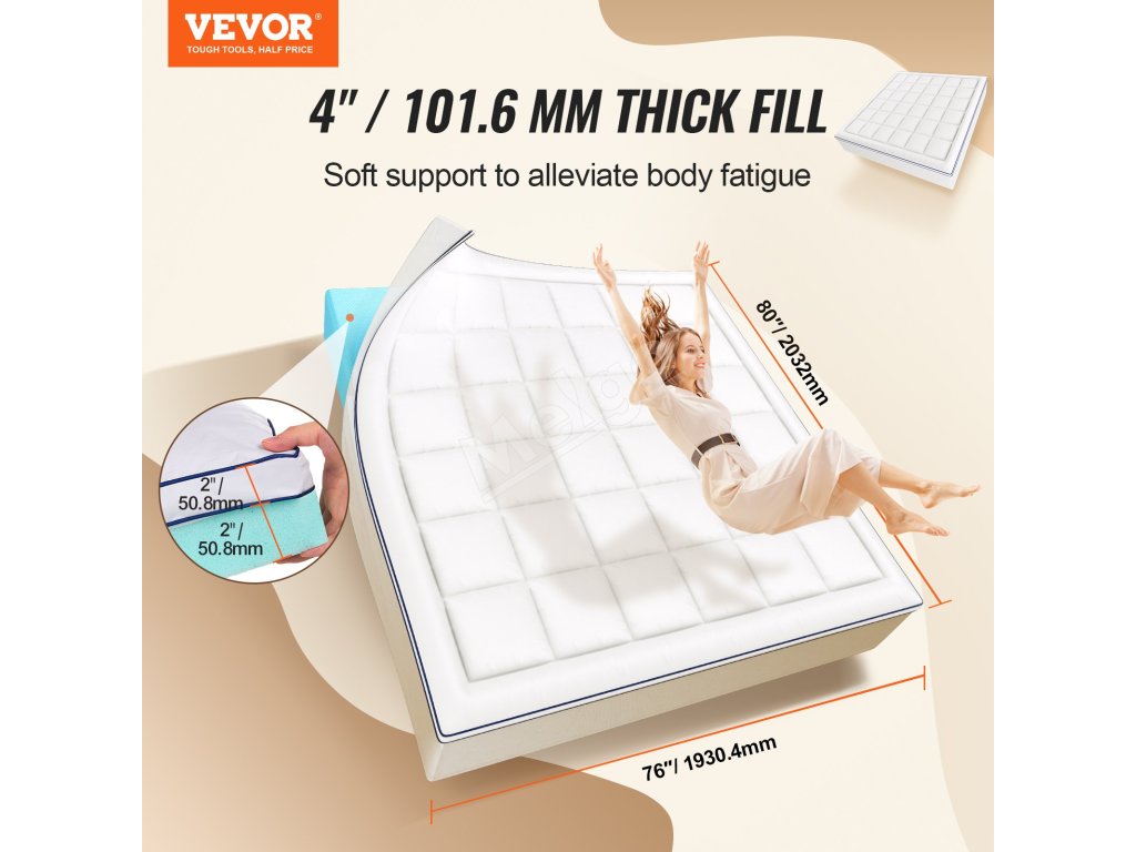 Topper na matrac pamäťová pena, vláknová výplň 1930×2032×101.6 mm