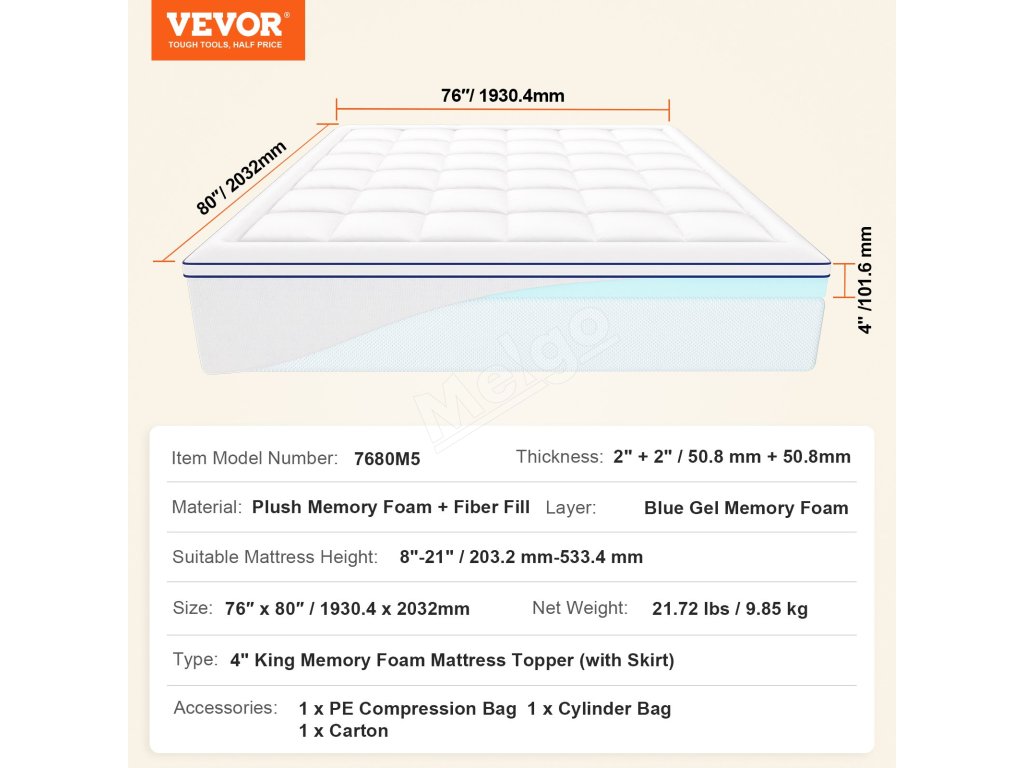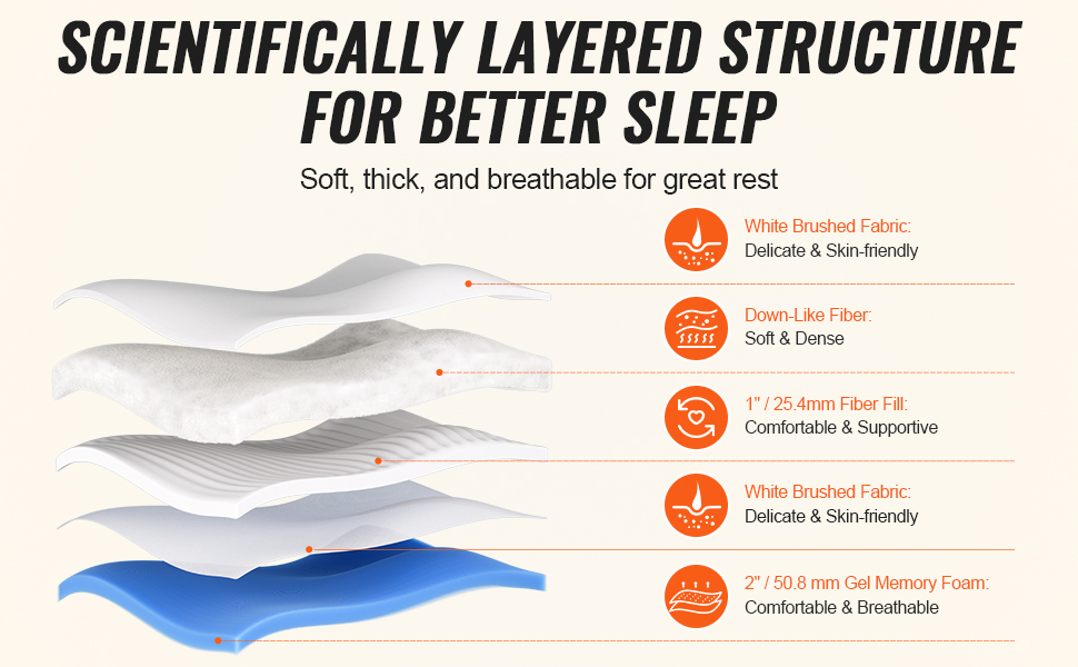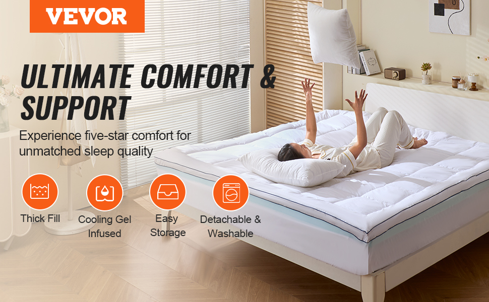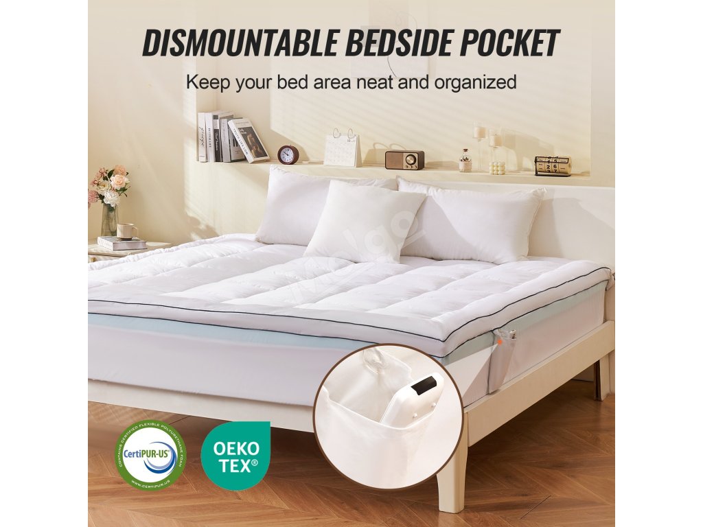 Náš topper na matrac je vyrobený z vysokokvalitnej pamäťovej špongie a tkaniny z polyesterových vlákien. Dokáže poskytnúť oporu pre telo. Špeciálne pridaný chladivý gélový materiál vám počas spánku zabezpečí chlad a pohodlie. Odnímateľný topper a konštrukcia vrecka na posteli vám uľahčia čistenie.