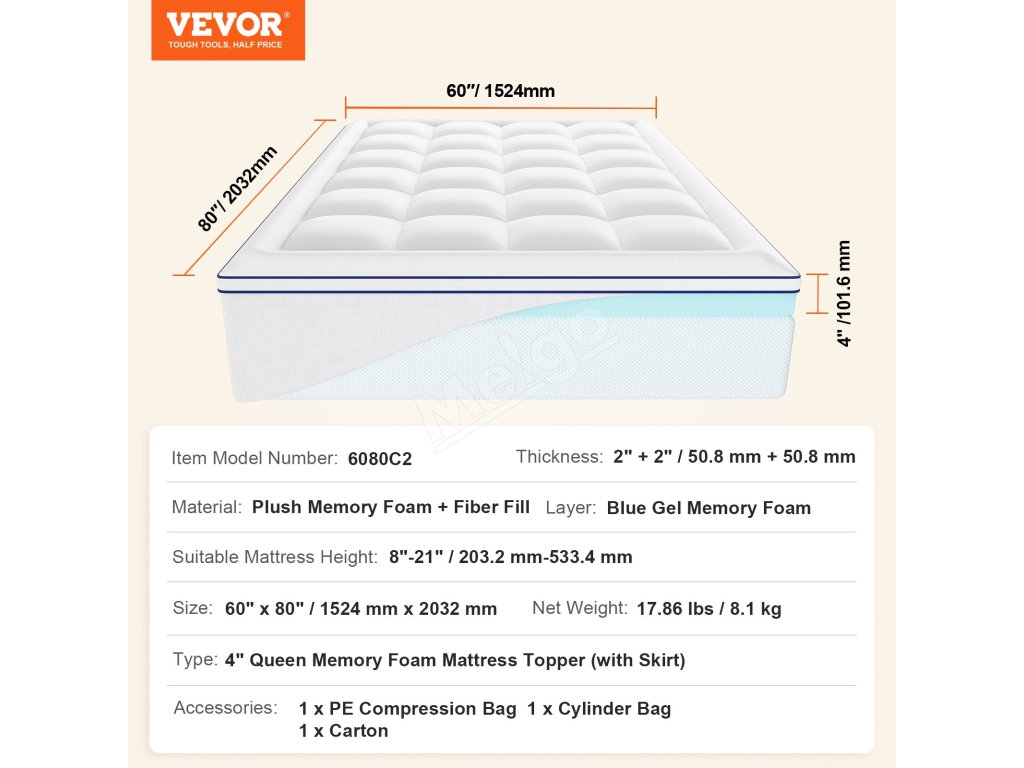 | Typ | 4" matrac s pamäťovou penou pre kráľovné (so sukňou) |