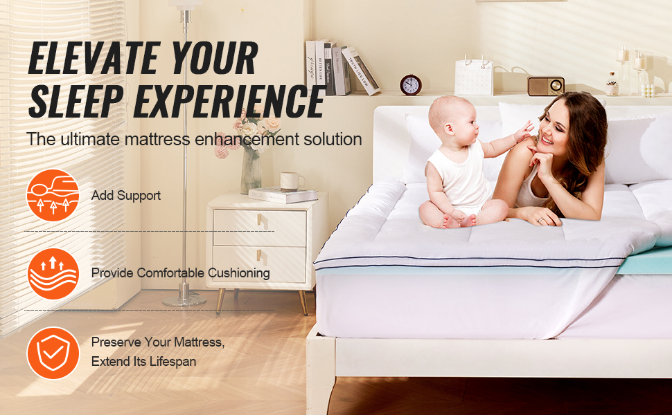 Náš vrchný matrac na posteľ funguje na každom matraci! Či už je váš matrac príliš tvrdý, príliš mäkký, starý alebo zašpinený, tento topper ho okamžite premení na ideálne pohodlnú posteľ. Vytvorte si ideálny priestor na spanie pre seba a svoju rodinu!