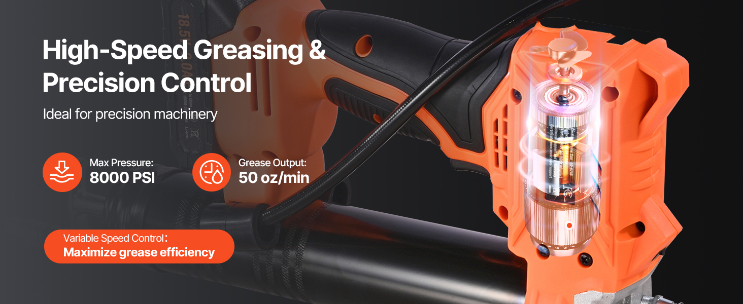 Vďaka tlaku 8 000 PSI a vysokému prietoku je mazanie s touto mazacou pištoľou hračka. Potrebujete presnosť? Spúšť s premenlivou rýchlosťou vám umožní regulovať výstup maziva, čo je ideálne pre jemné stroje a zníženie množstva odpadu.