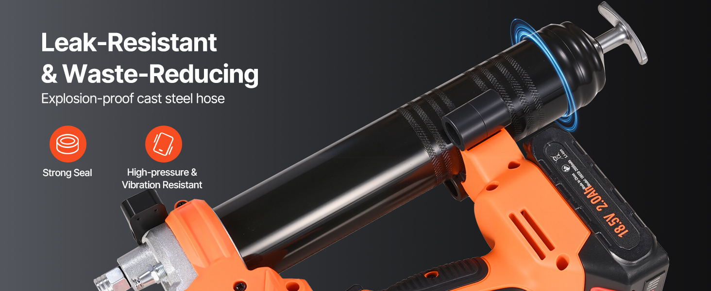 Už žiadne nepríjemné úniky! Vystužená oceľová hadica našej bezdrôtovej mazacej pištole odolá extrémnemu tlaku a zakaždým zabezpečí bezpečný prenos maziva. Menej prestojov, nižšie náklady na údržbu a dlhšia životnosť stroja - čo si nezamilovať?