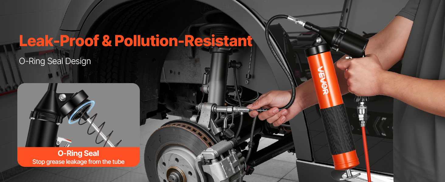 Vďaka konštrukcii s utesnenou konštrukciou naša pneumatická mazacia pištoľ zabraňuje úniku maziva pod vysokým tlakom, znižuje množstvo odpadu a udržiava každú opravu čistú.