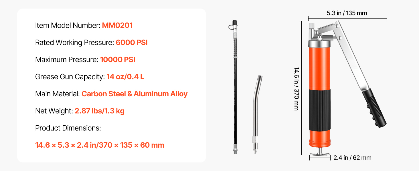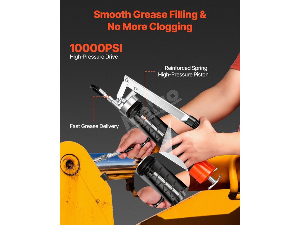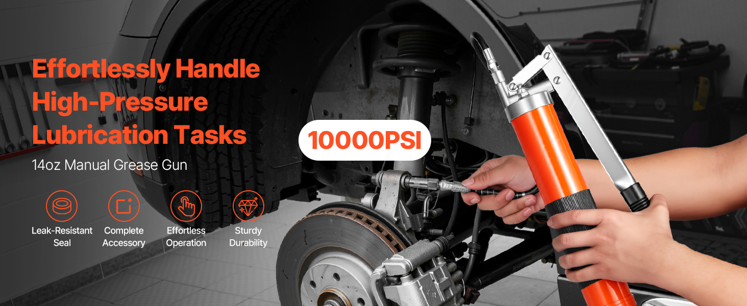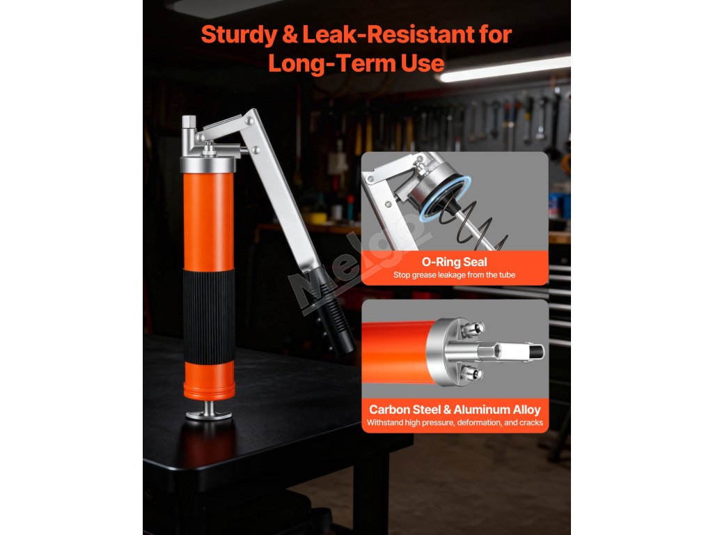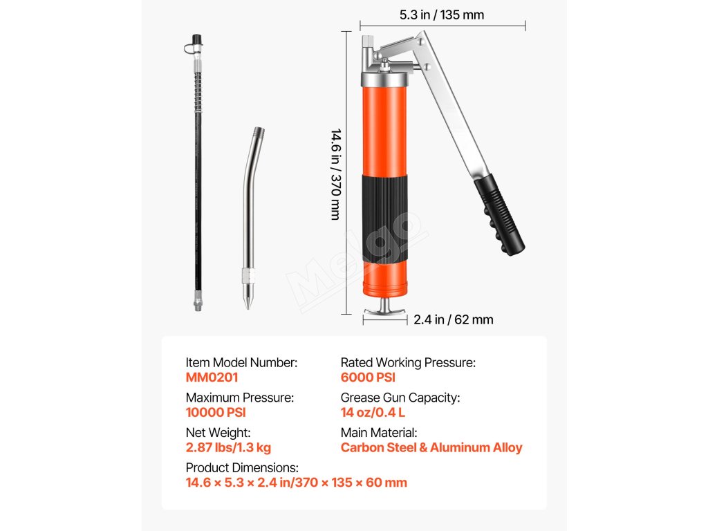Žiadne obavy z lepkavosti alebo hrdze! Táto mazacia pištoľ s tlakom 10 000 PSI a s objemom 14 oz hladko tlačí, účinne vstrekuje a zabezpečuje dôkladnú údržbu bez zasekávania.