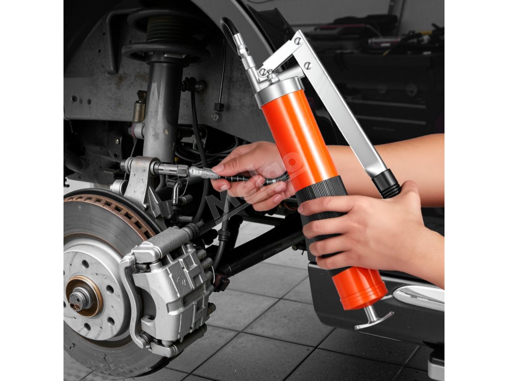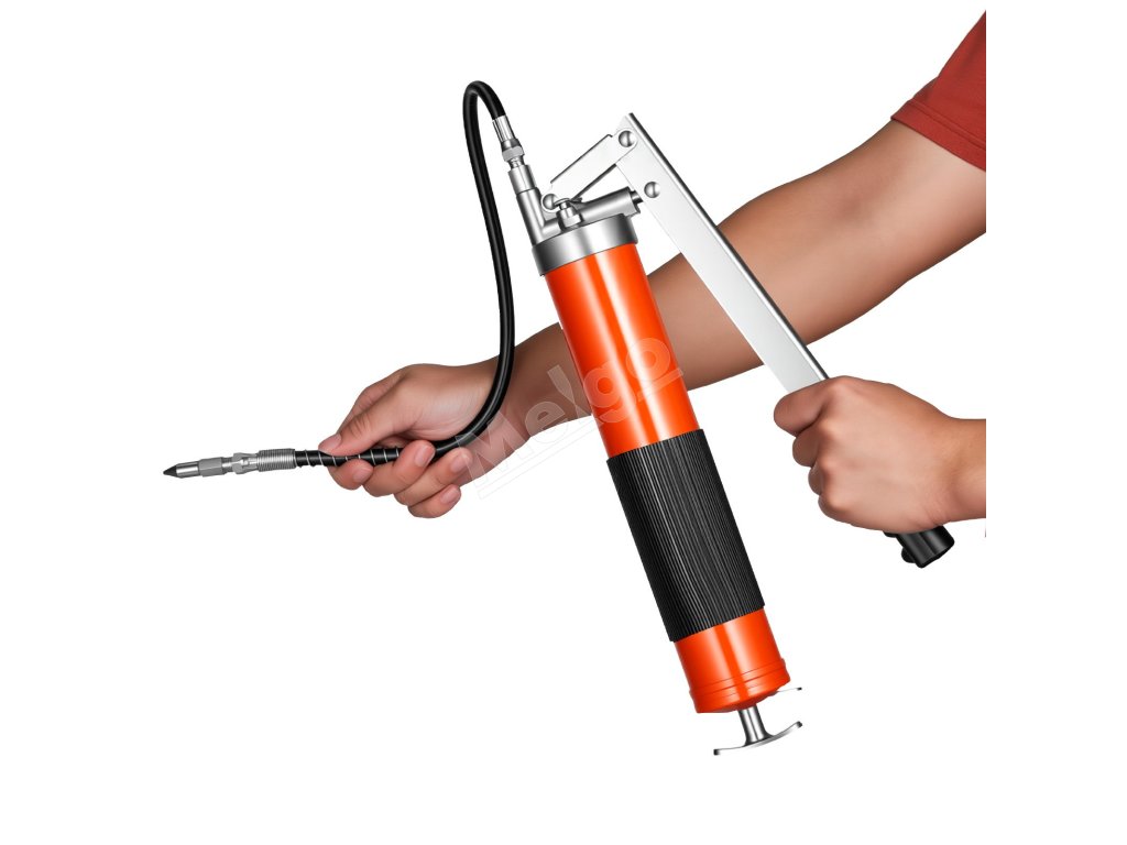 Táto profesionálna pištoľová mazacia pištoľ vyrobená z tela z uhlíkovej ocele v kombinácii s hlavou čerpadla z hliníkovej zliatiny odoláva deformáciám a úniku maziva aj pri častom používaní.