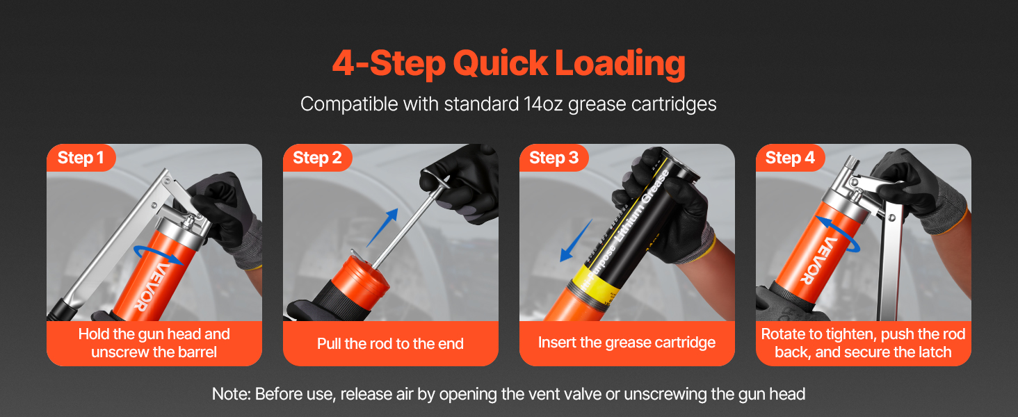 Naša pištoľová mazacia pištoľ s ťažkou rukoväťou, ktorá je kompatibilná so severoamerickými štandardnými mazacími kazetami s objemom 14 uncí, umožňuje rýchle plnenie a jednoduchú údržbu.