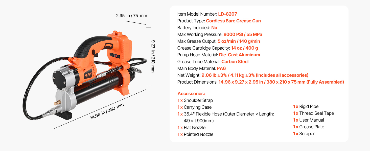 Prejdite na bezdrôtové pripojenie a získajte úplnú slobodu! Zabudované LED svetlo elektrickej mazacej pištole zabezpečuje jas v tmavých pracovných priestoroch. Mäkká gumová rukoväť zaručuje pohodlnú manipuláciu, zatiaľ čo kompaktný úložný kufor umožňuje bezproblémovú prepravu a skladovanie.