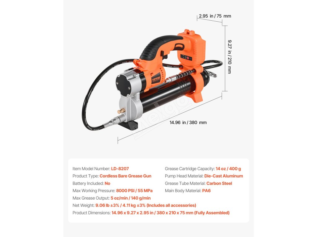 Zahoďte ručné čerpanie! Táto automatická mazacia pištoľ vystrelí 50 uncí za minútu a poskytne vašim strojom lásku, ktorú si zaslúžia. Flexibilné a pevné hadice znamenajú hladké mazanie bez neporiadku. Menej námahy, viac efektivity - stačí stlačiť spúšť a ísť!