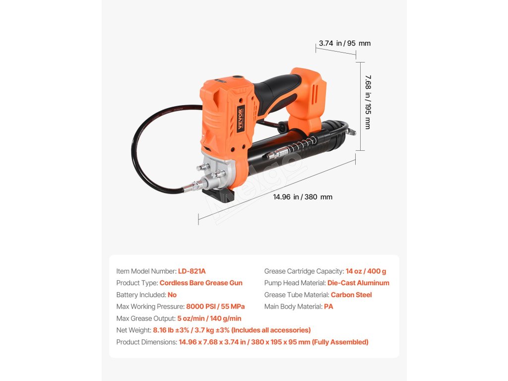 Akumulátorová mazacia pištoľ 8000 psi, hadica 35.4-inch, pre 18V bat.