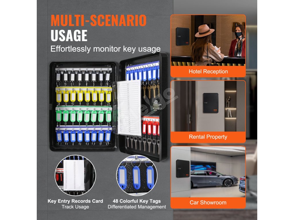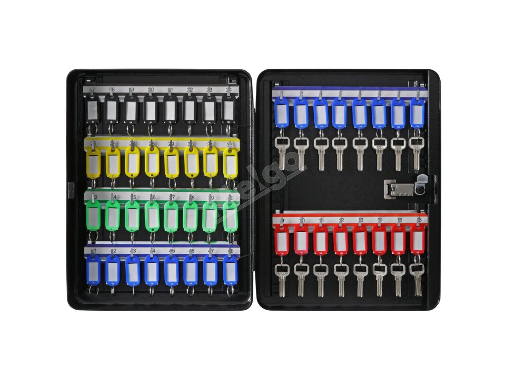 Skrinka na kľúče 48 miest, kombinačný a kľúčový zámok, 48 štítkov