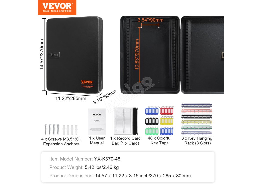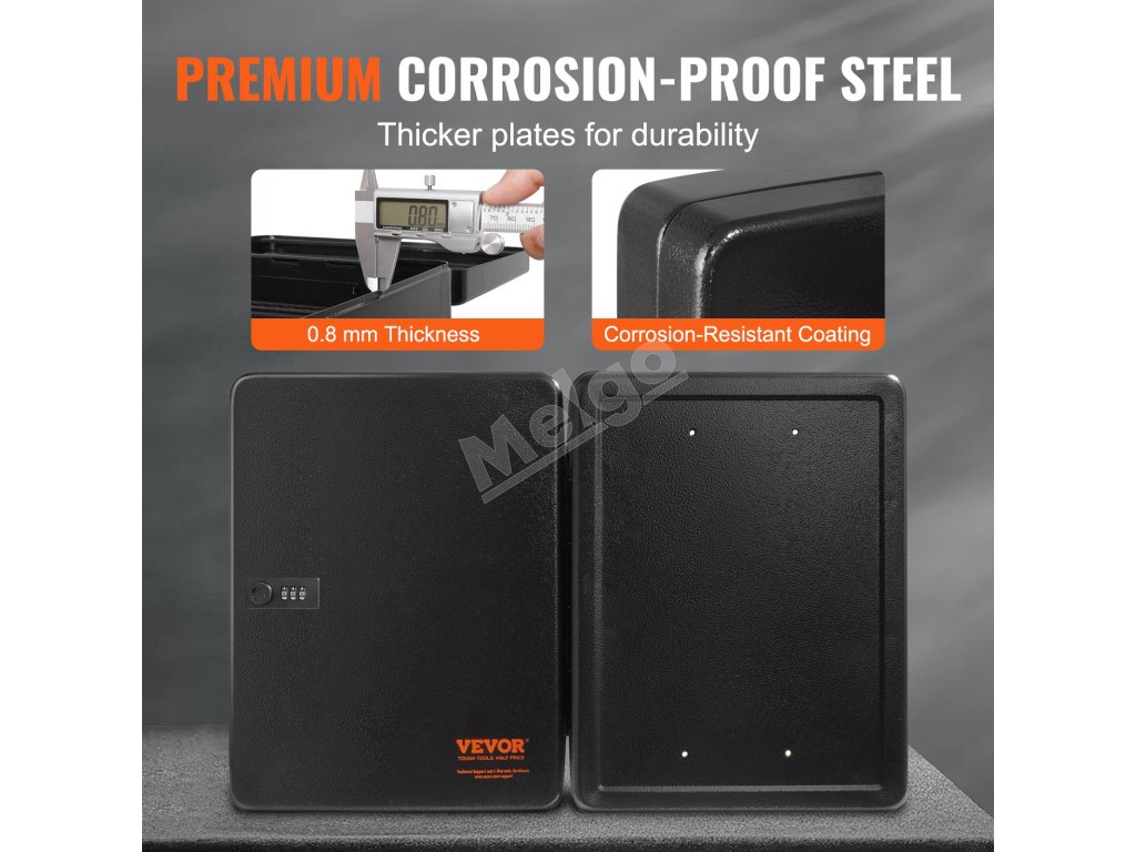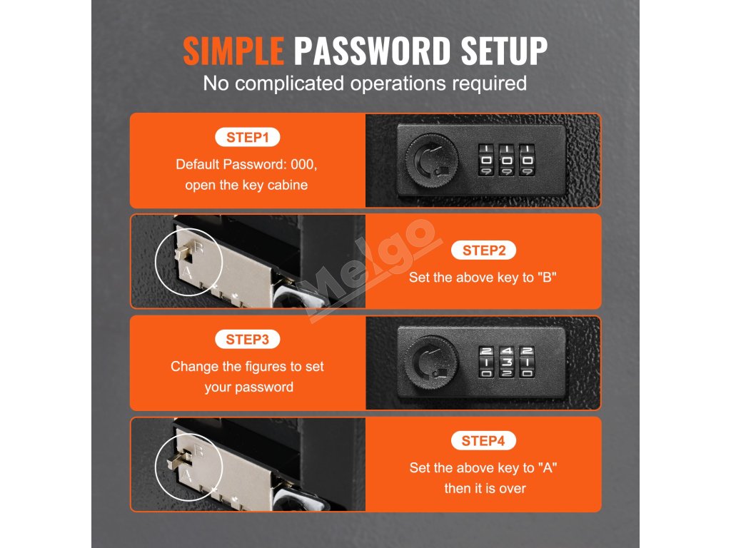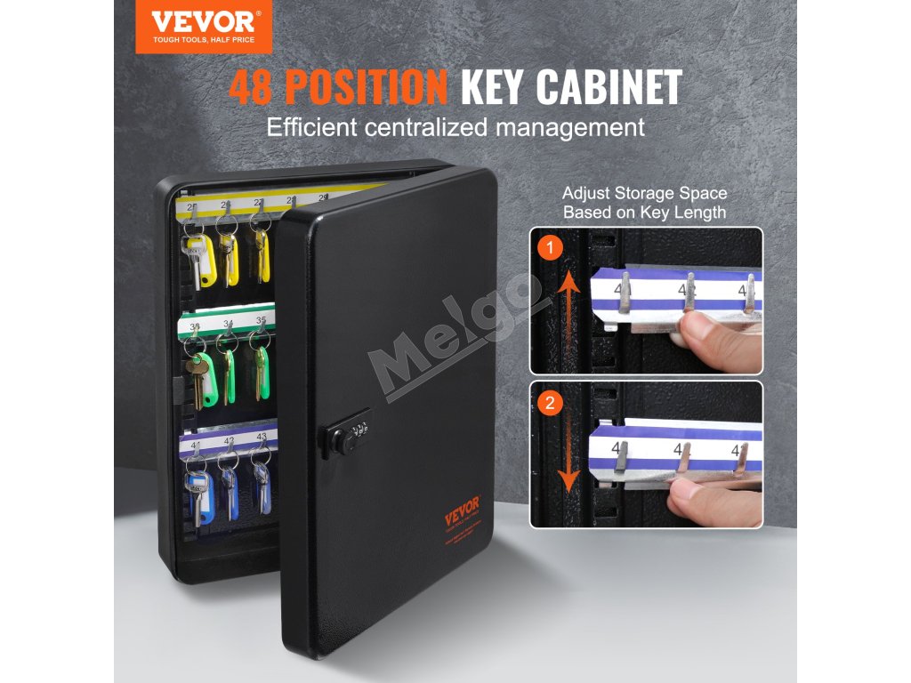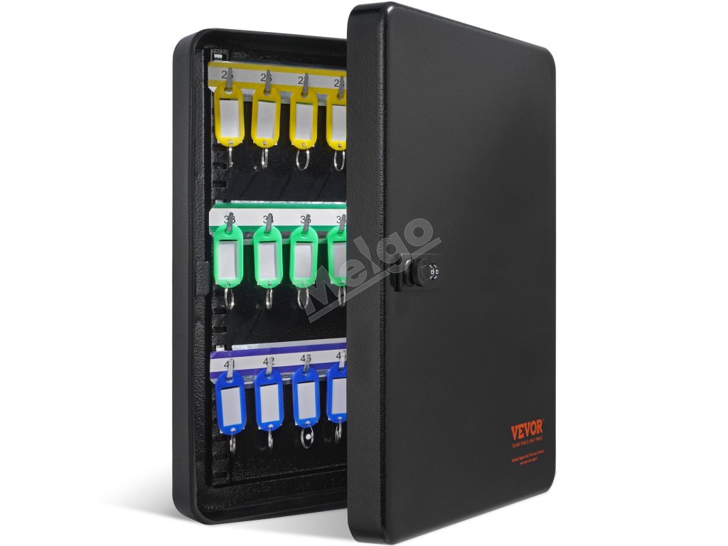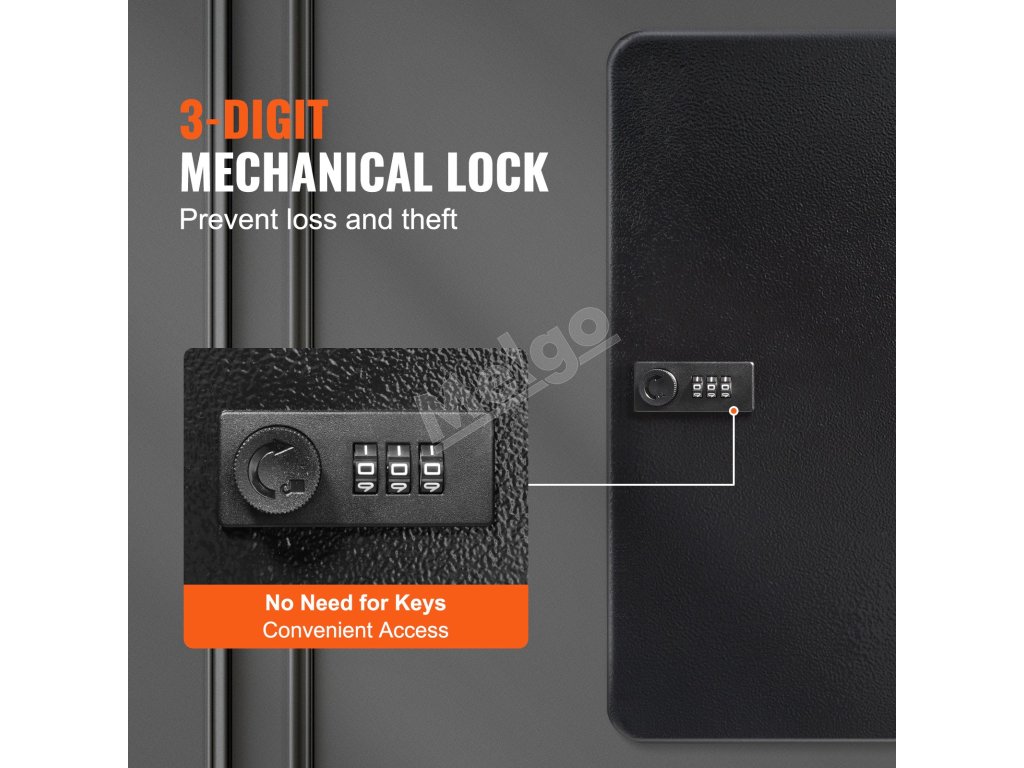 Táto skrinka na kľúče vyrobená s vysokokvalitným oceľovým puzdrom a 3-miestnym mechanickým zámkom zaisťuje bezpečnosť uloženia kľúčov. Nemusíte sa obávať straty kľúčov, pretože heslo môžete kedykoľvek zmeniť.