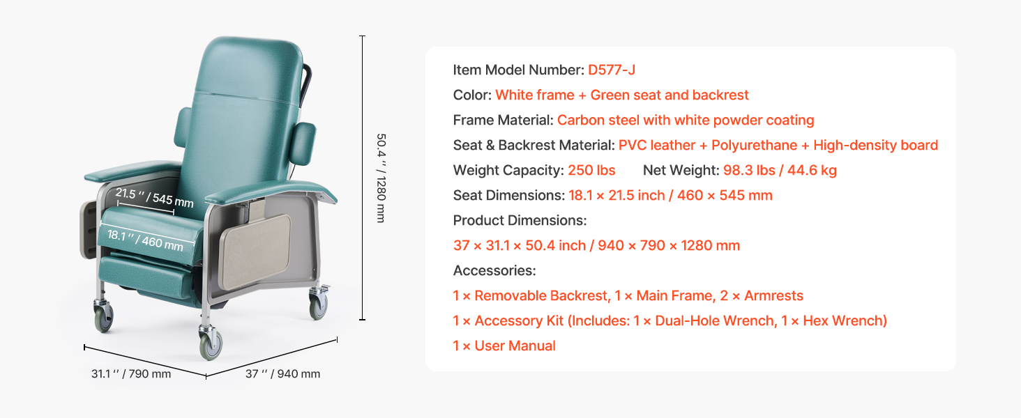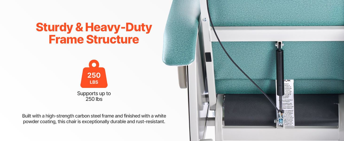 Toto nemocničné polohovateľné kreslo je vyrobené z vysokopevnostného rámu z uhlíkovej ocele a povrchovo upravené bielou práškovou farbou, je odolné a nehrdzavie. S nosnosťou 113 kg / 250 libier zabezpečuje spoľahlivú stabilitu a oporu pre používateľov rôznych typov postavy