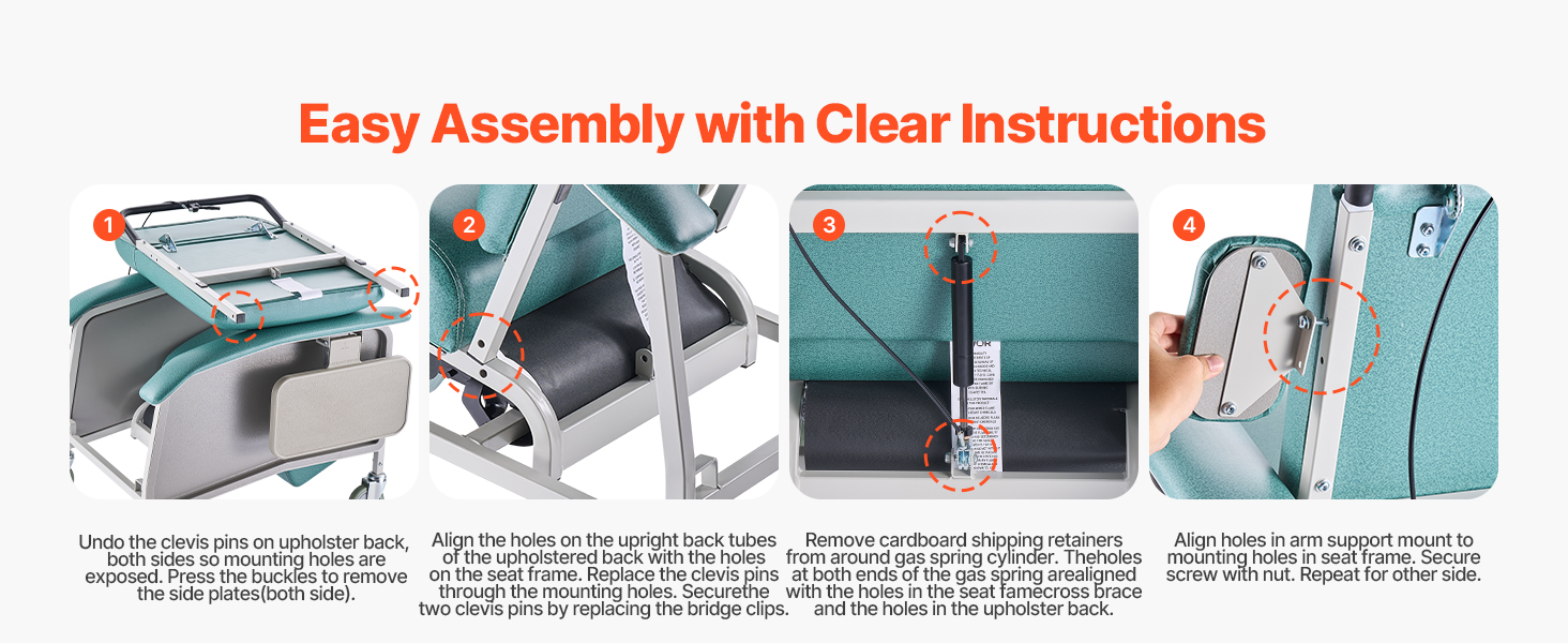 Nastavenie tohto lekárskeho geri lehátka je rýchle a jednoduché. Dodáva sa s jasným návodom na montáž a potrebnými montážnymi dielmi. Nie sú potrebné žiadne špeciálne zručnosti - stačí postupovať podľa pokynov a ľahko dokončiť inštaláciu