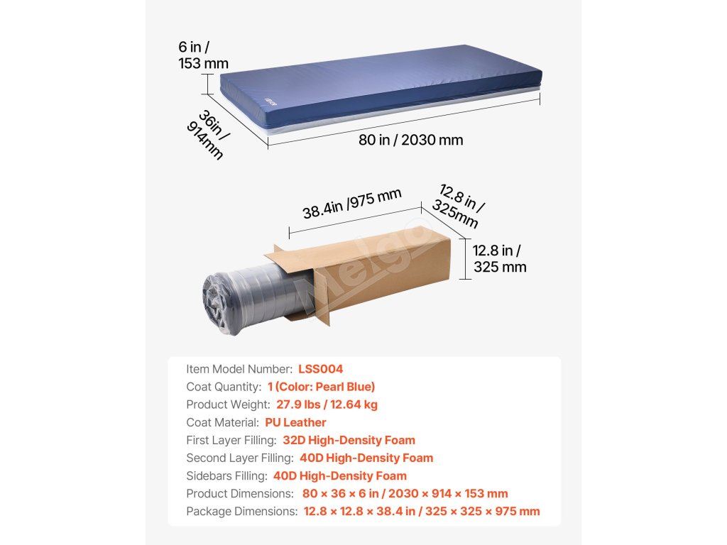 | Rozmery výrobku | 80 x 36 x 6 palcov / 2030 x 914 x 153 mm |