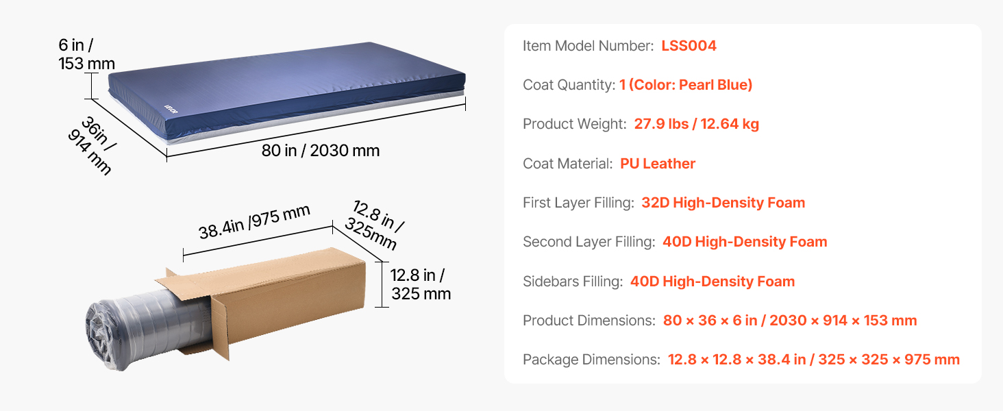 Lôžkový matrac 227 kg, dvojvrstvový penový, nepremokavý, 914×2030×153mm