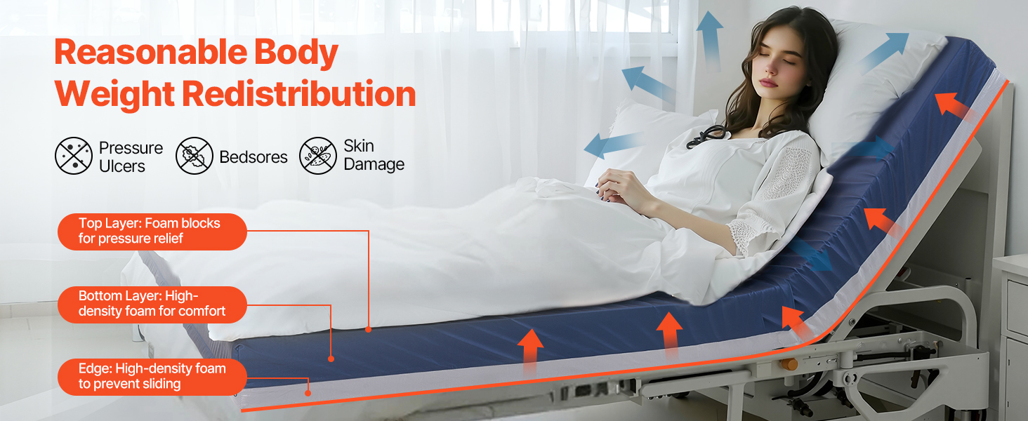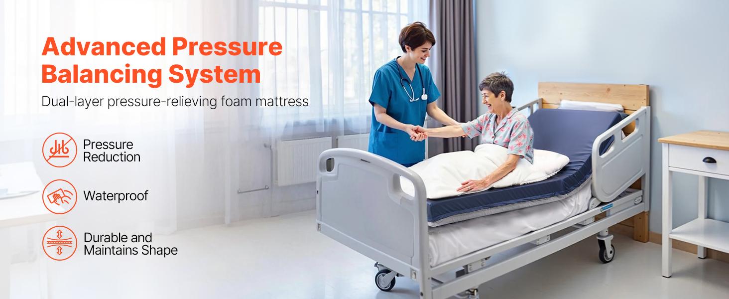 Tento dvojvrstvový penový matrac na nemocničné lôžko je vybavený viacvrstvovým systémom na zmiernenie tlaku - tlmí, uvoľňuje a podporuje. Rovnomerne rozkladá tlak na telo, čím znižuje nepríjemné tlakové body, takže si zachováte pohodlie aj počas dlhého odpočinku.