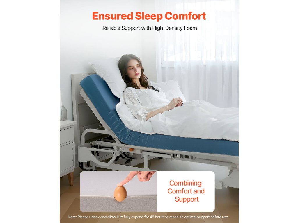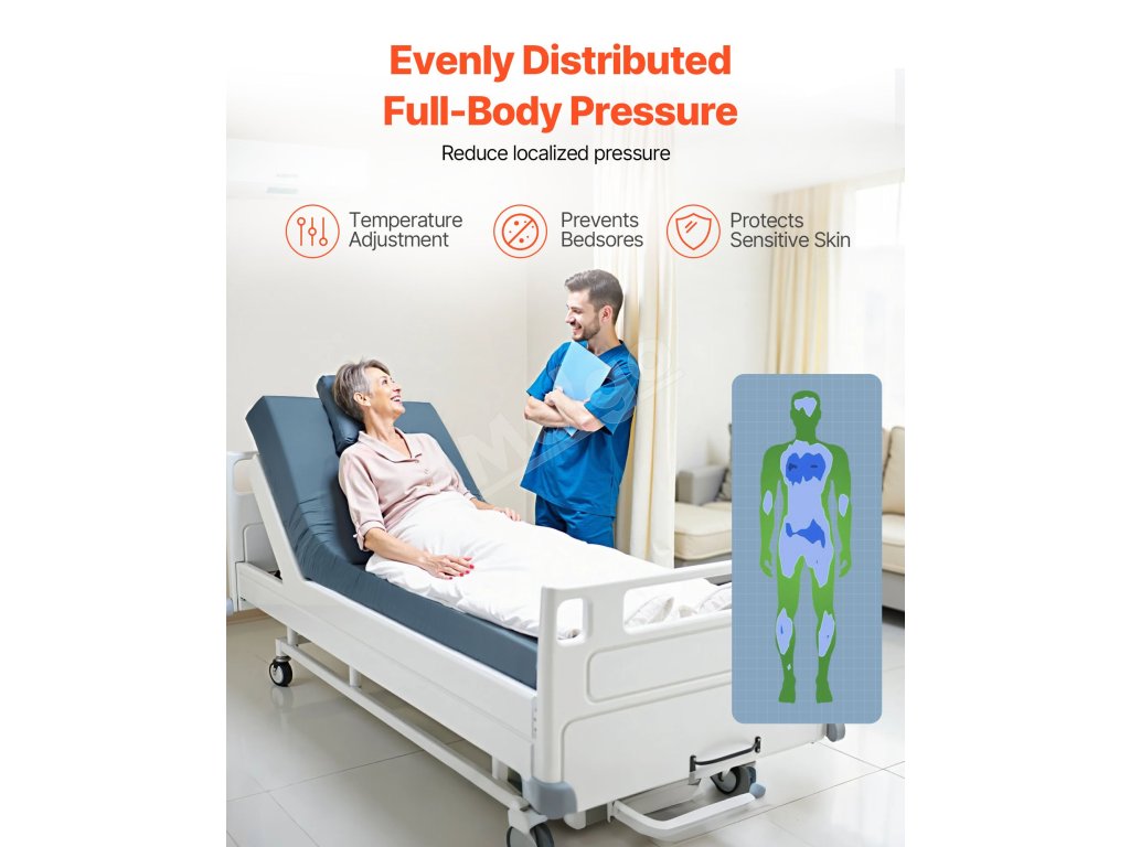 Tento penový matrac do nemocničných postelí s vysokou hustotou je vybavený viacvrstvovým systémom na zmiernenie tlaku - tlmí, uvoľňuje a podporuje. Rovnomerne rozkladá tlak na telo, čím znižuje nepríjemné tlakové body, takže si zachováte pohodlie aj počas dlhého odpočinku.