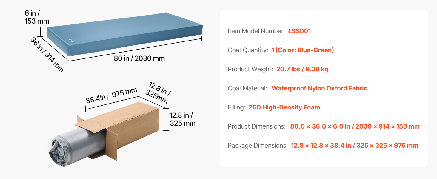 | Rozmery výrobku | 80.0 x 36,0 x 6,0 in / 2030 x 914 x 153 mm |