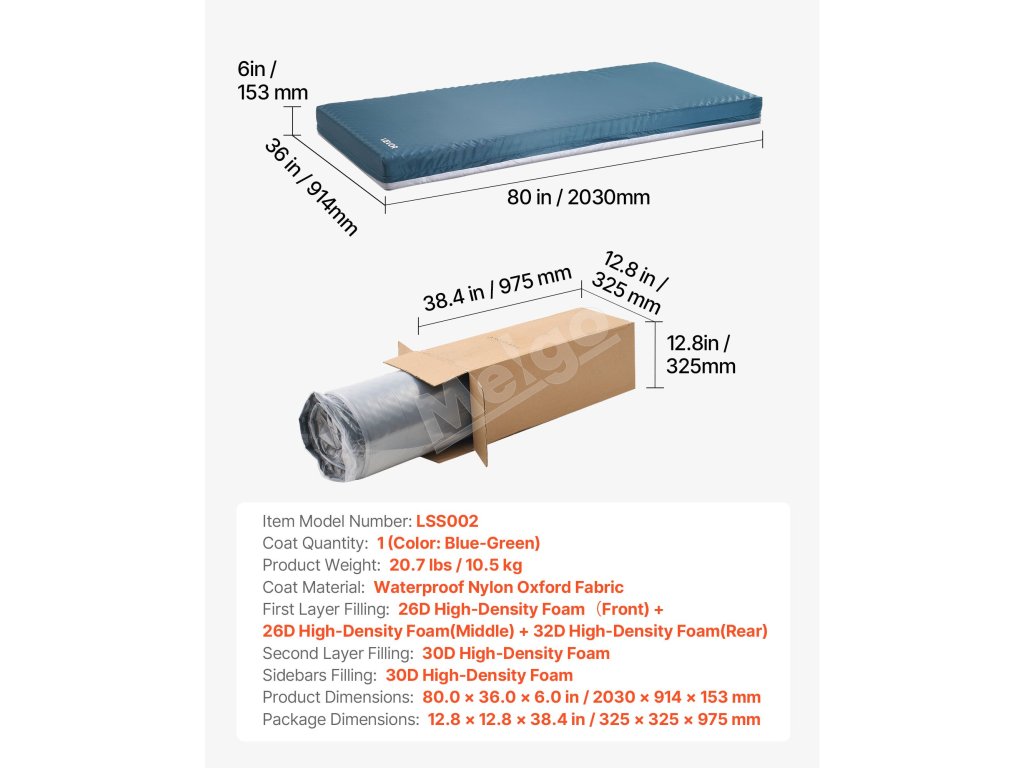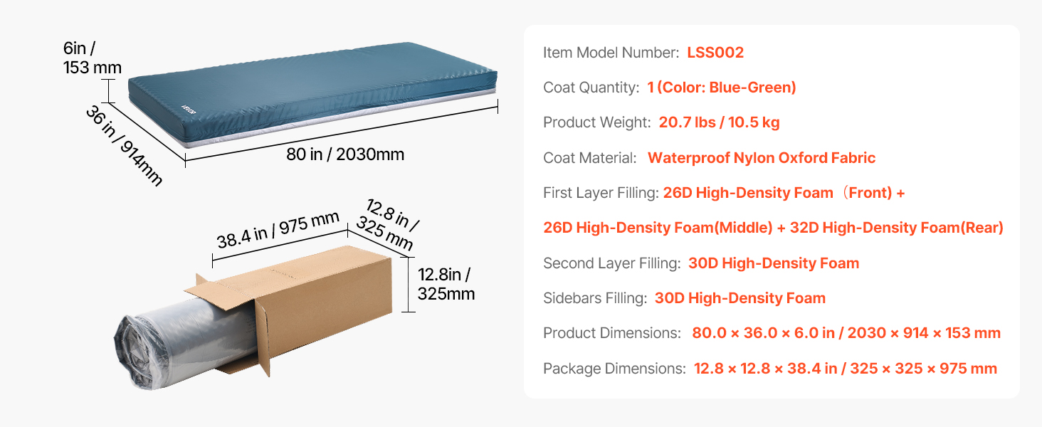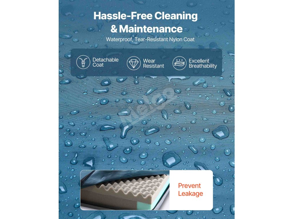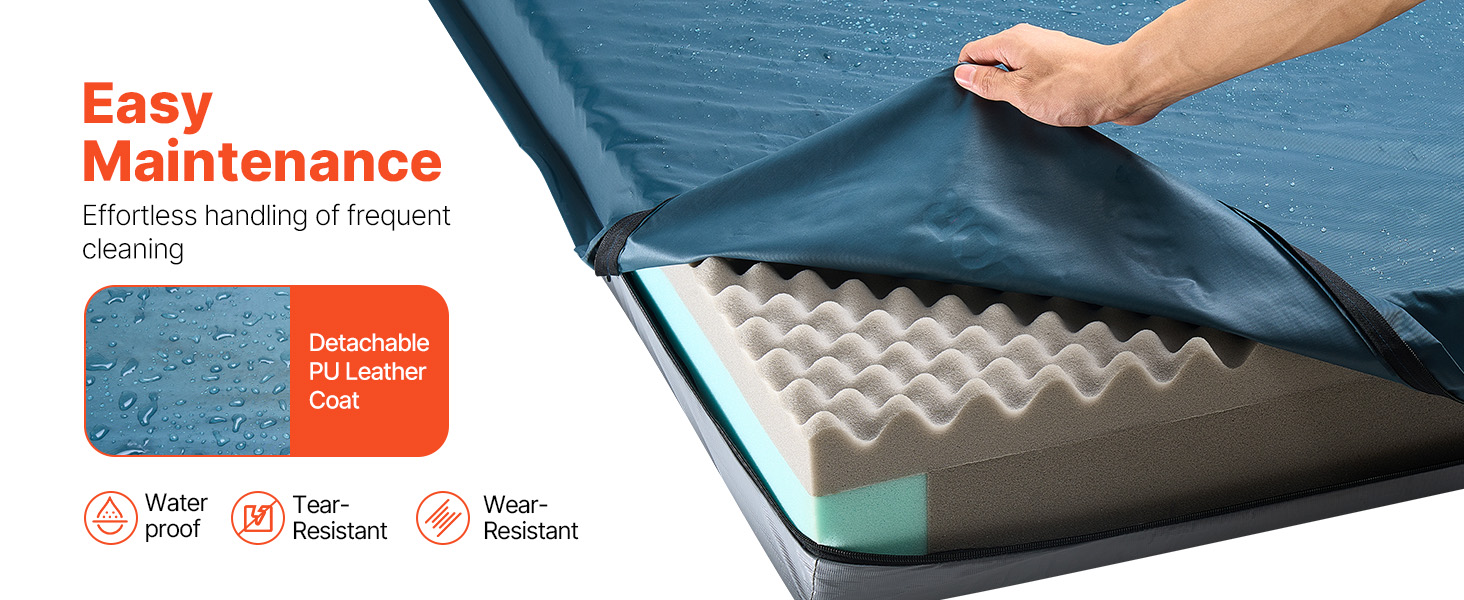Penový zdravotný matrac sa dodáva so snímateľným, nepremokavým poťahom z nylonu Oxford, ktorý je odolný proti opotrebovaniu. Je navrhnutý tak, aby blokoval rozliate tekutiny, odolával roztrhnutiu a zvládol časté čistenie bez toho, aby sa poškodil - je ideálny na každodenné používanie.