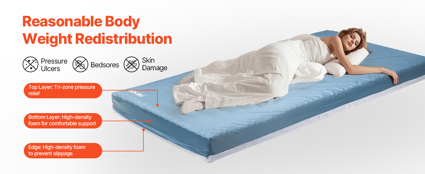 Tento matrac do nemocničného lôžka je navrhnutý s tromi cielenými zónami a poskytuje kľúčovým tlakovým bodom potrebnú podporu. Dvojvrstvová penová konštrukcia tlmí tam, kde je to dôležité, čím znižuje nepríjemné tlakové body a zvyšuje pohodlie pri dlhodobom odpočinku.