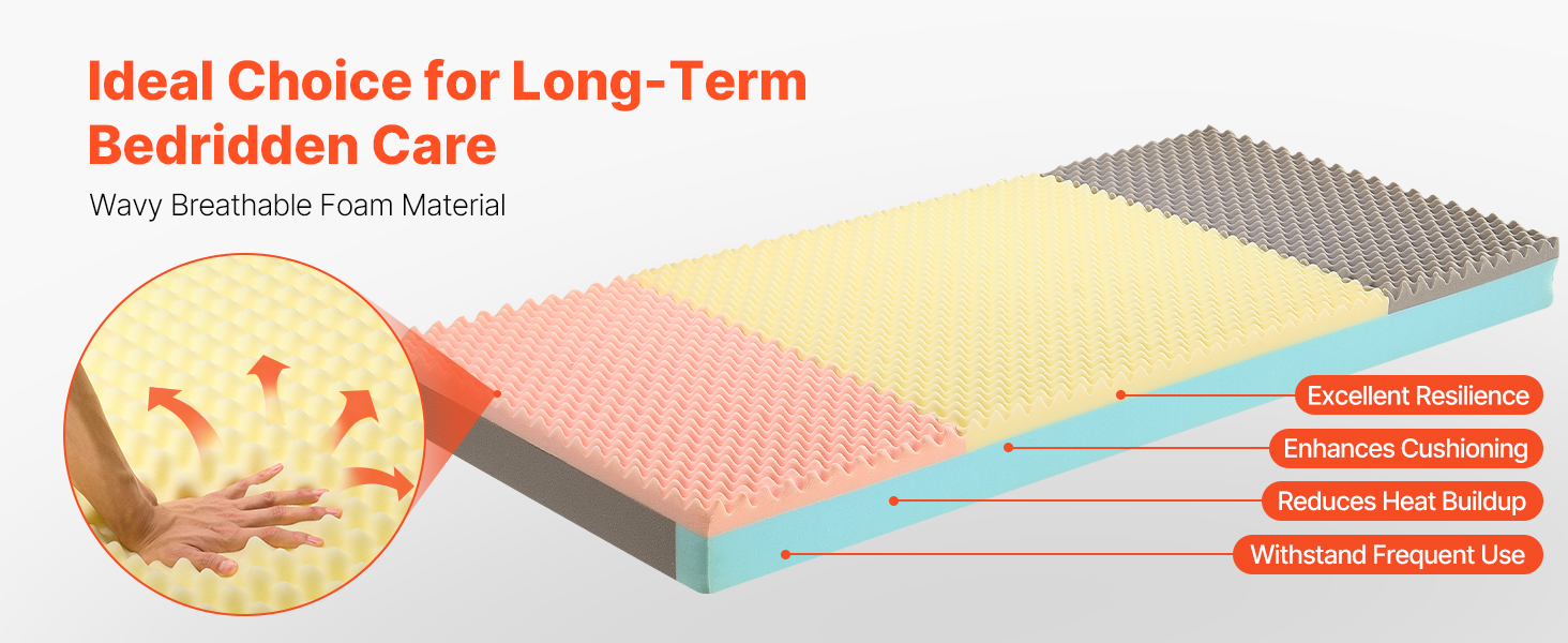 Náš nemocničný matrac využíva dvojvrstvový vyvážený systém podpory, ktorý rozkladá tlak na hlavu, boky a nohy a rovnomerne rozkladá hmotnosť vášho tela. Je to rozumná voľba pre tých, ktorí trávia v posteli viac času, znižuje riziko vzniku preležanín a chráni citlivú pokožku.