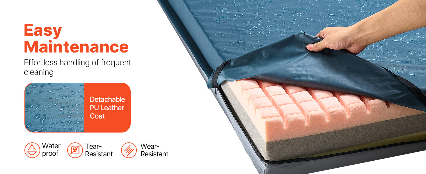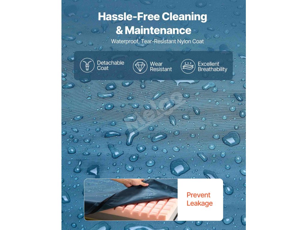 Penový zdravotný matrac sa dodáva so snímateľným, nepremokavým nylonovým poťahom Oxford, ktorý je odolný proti opotrebovaniu. Je navrhnutý tak, aby blokoval rozliate tekutiny, odolával roztrhnutiu a zvládol časté čistenie bez toho, aby sa poškodil - je ideálny na každodenné používanie.