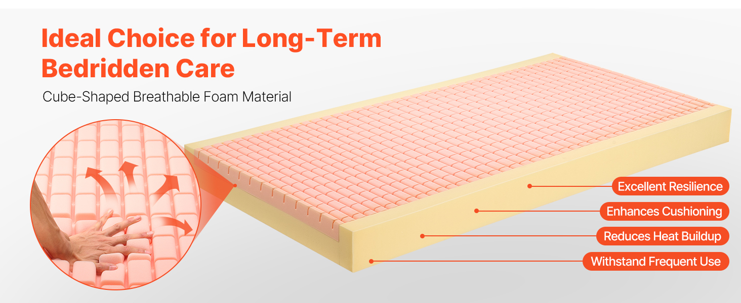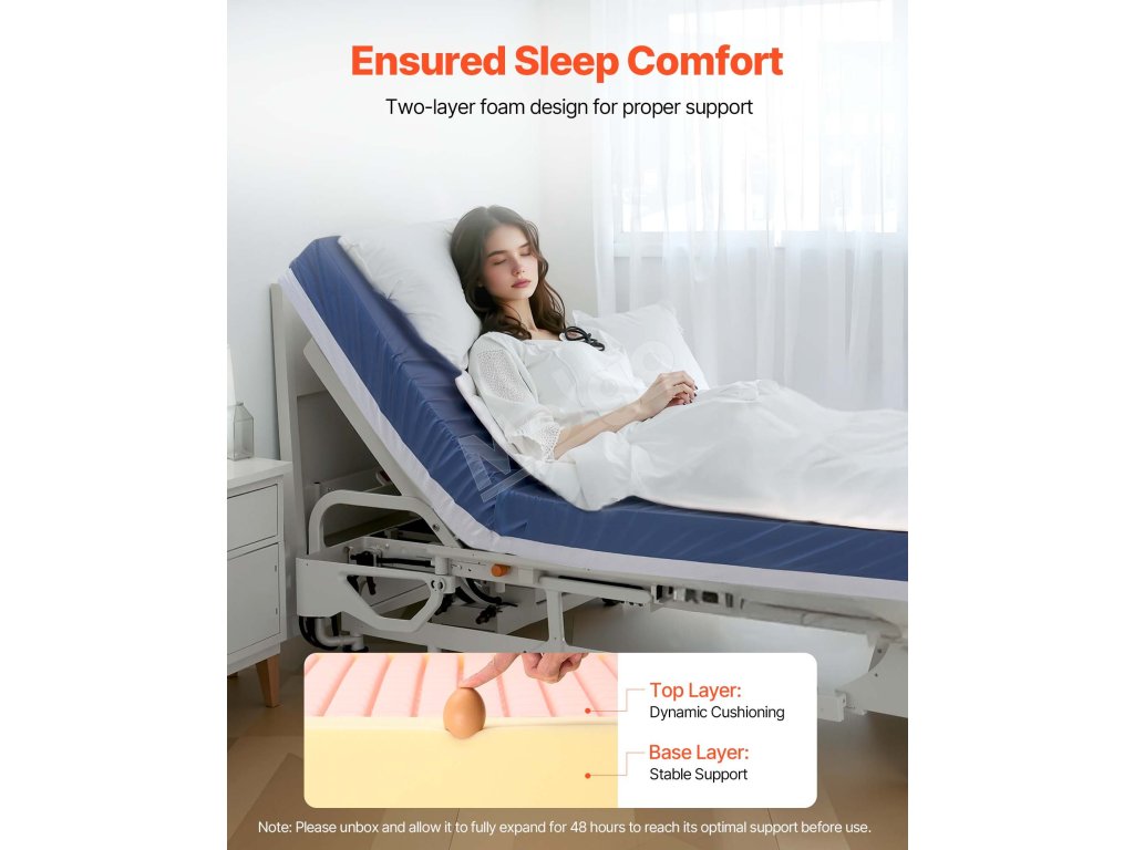 Tento dvojvrstvový penový matrac na nemocničné lôžko je vybavený viacvrstvovým systémom na zmiernenie tlaku - tlmí, uvoľňuje a podporuje. Rovnomerne rozkladá tlak na telo, čím znižuje nepríjemné tlakové body, takže si zachováte pohodlie aj počas dlhého odpočinku.