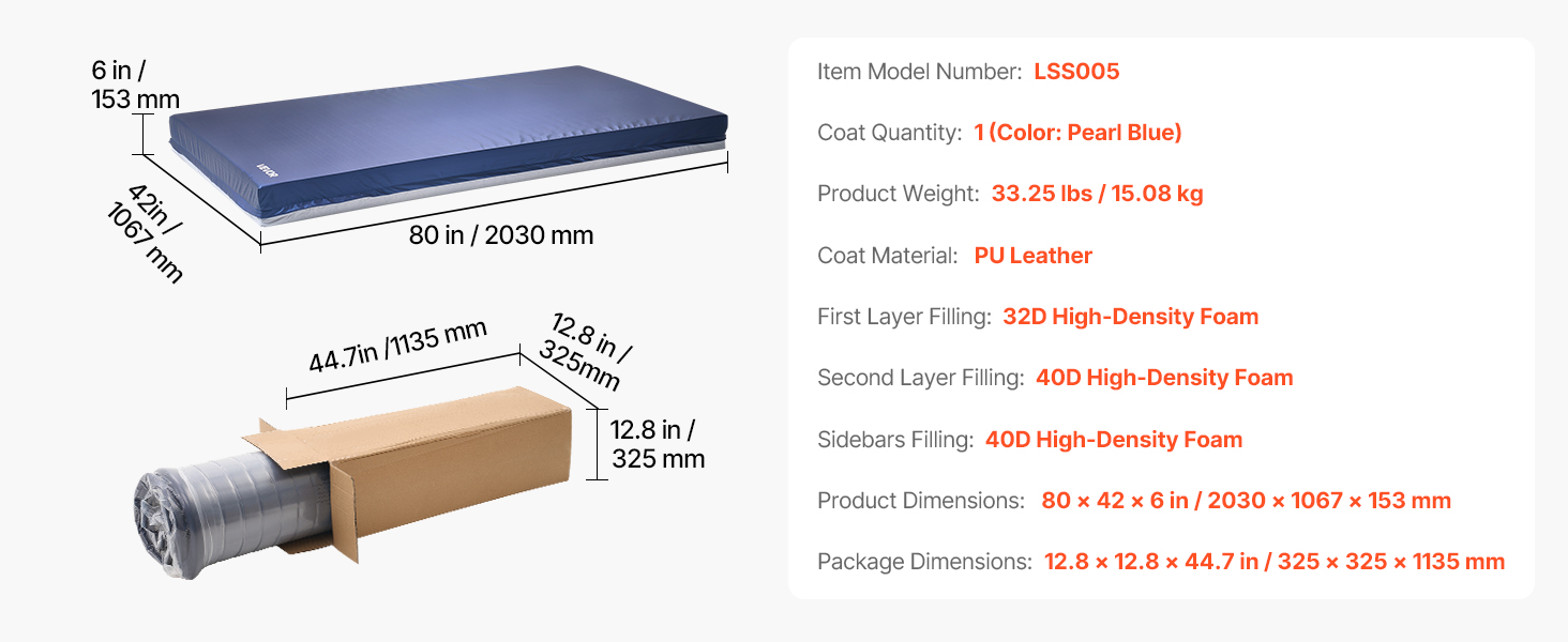 Nemocničný matrac 295 kg, dvojvrstvový, vodotesný, 1067×2030×153 mm