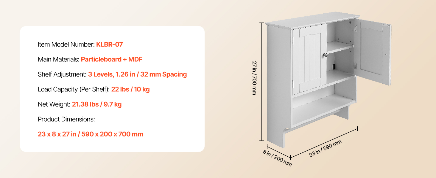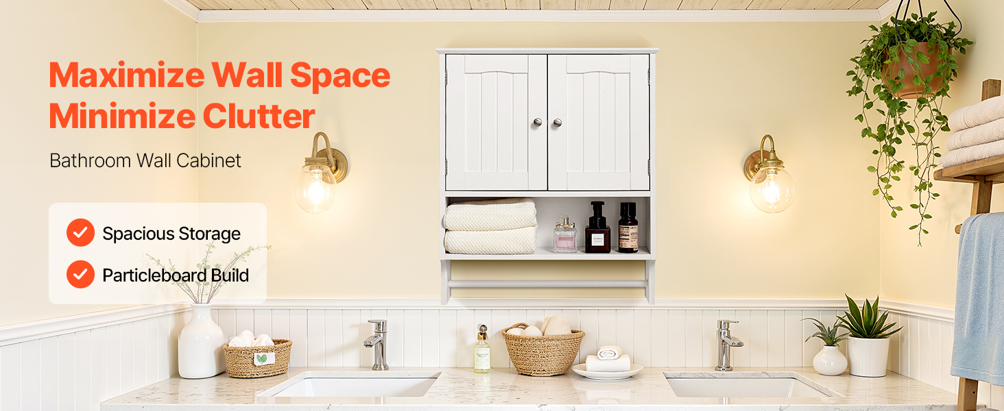 Táto nástenná skrinka do kúpeľne je vyrobená z prvotriednej drevotriesky, je robustná, odolná a atraktívna. Jej priestranný interiér s 3-úrovňovou nastaviteľnou policou maximalizuje vertikálny úložný priestor. Naša kúpeľňová nástenná skrinka spĺňa potreby na uskladnenie rôznych toaletných potrieb a rôznych predmetov.